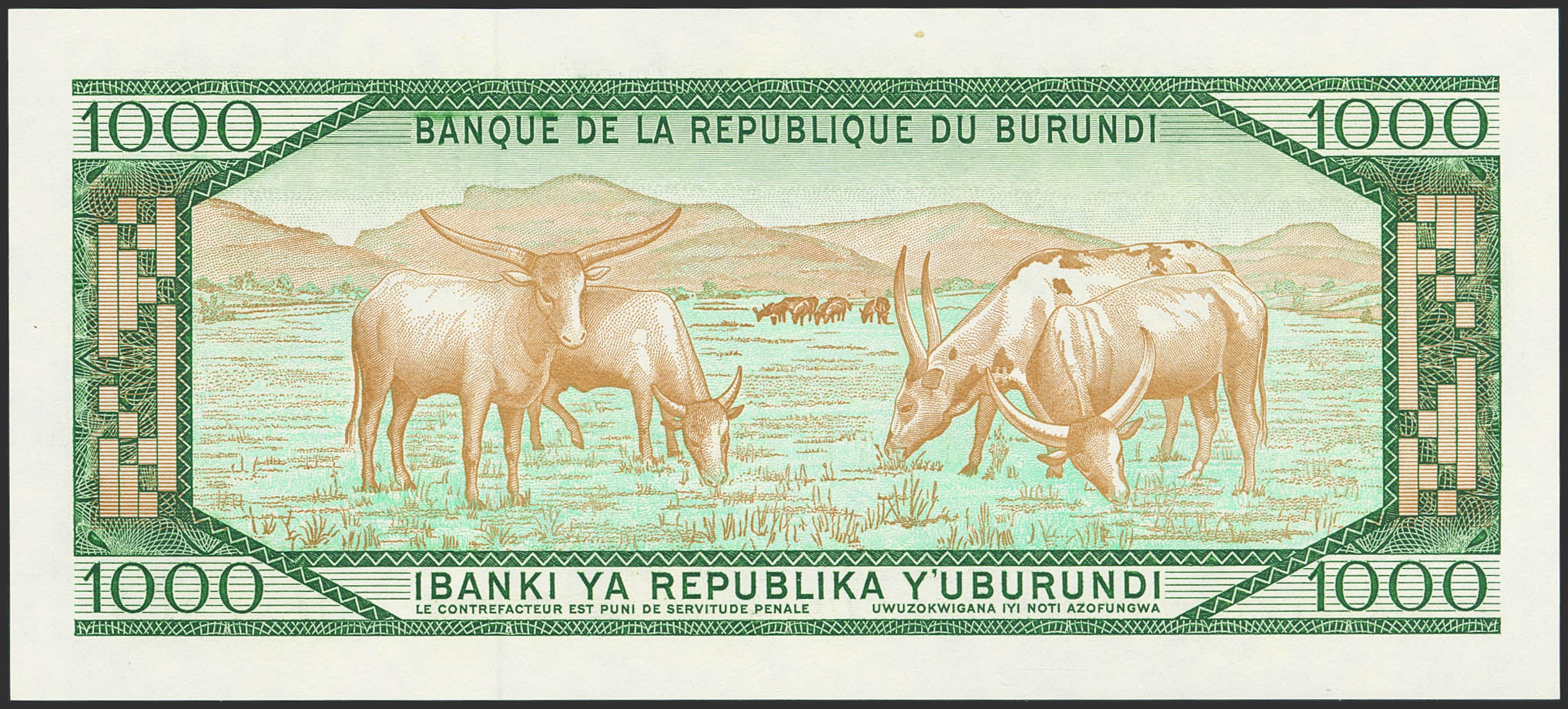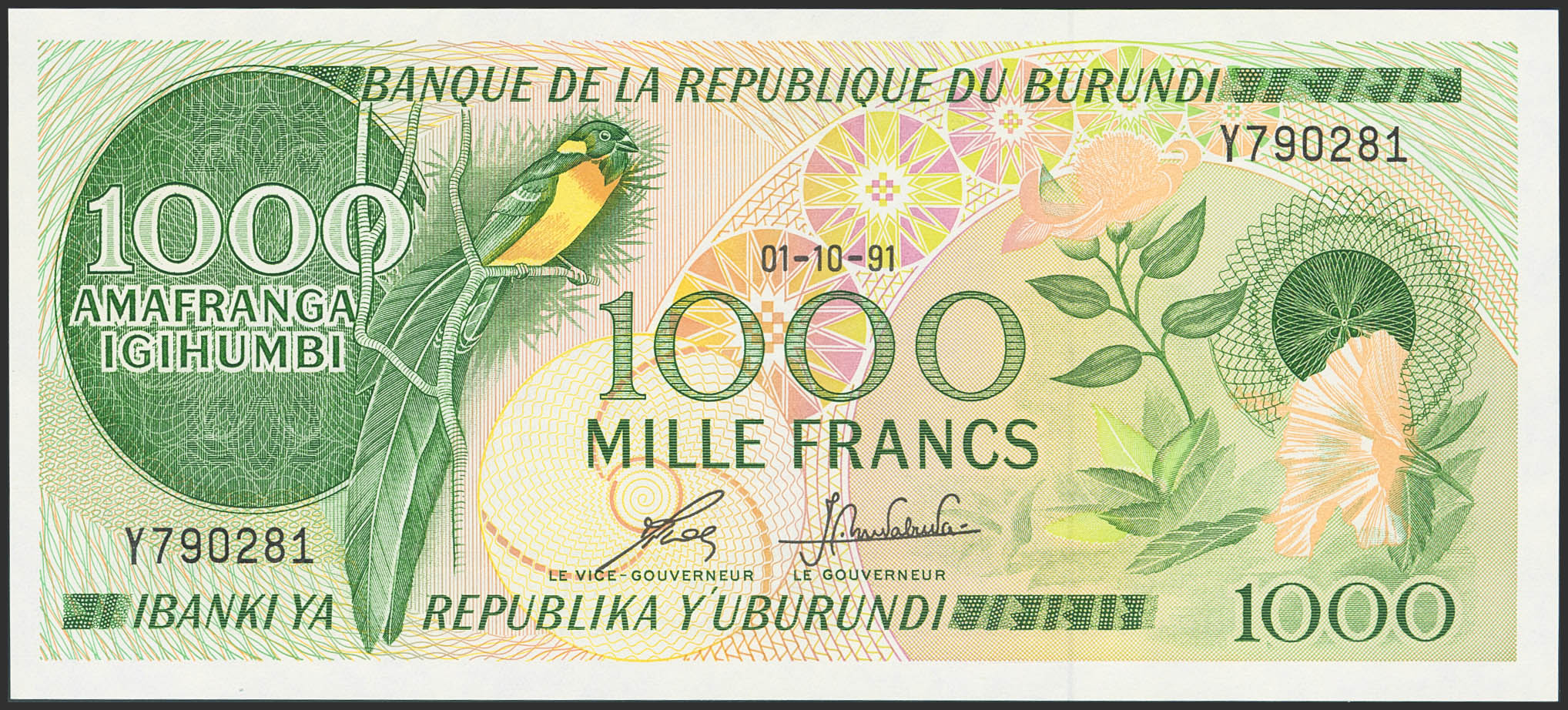 BURUNDI. 1000 Francs. 1 October 1991. (Pick: 31d). Uncirculated.