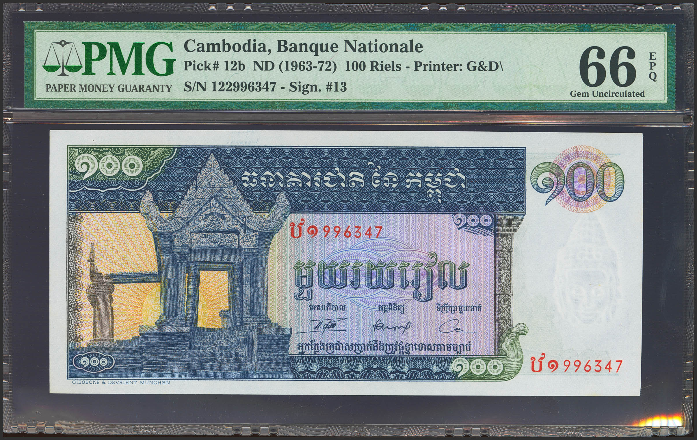 CAMBODIA. 100 Riels. (1963ca). (Pick: 12b). PMG66EPQ.
