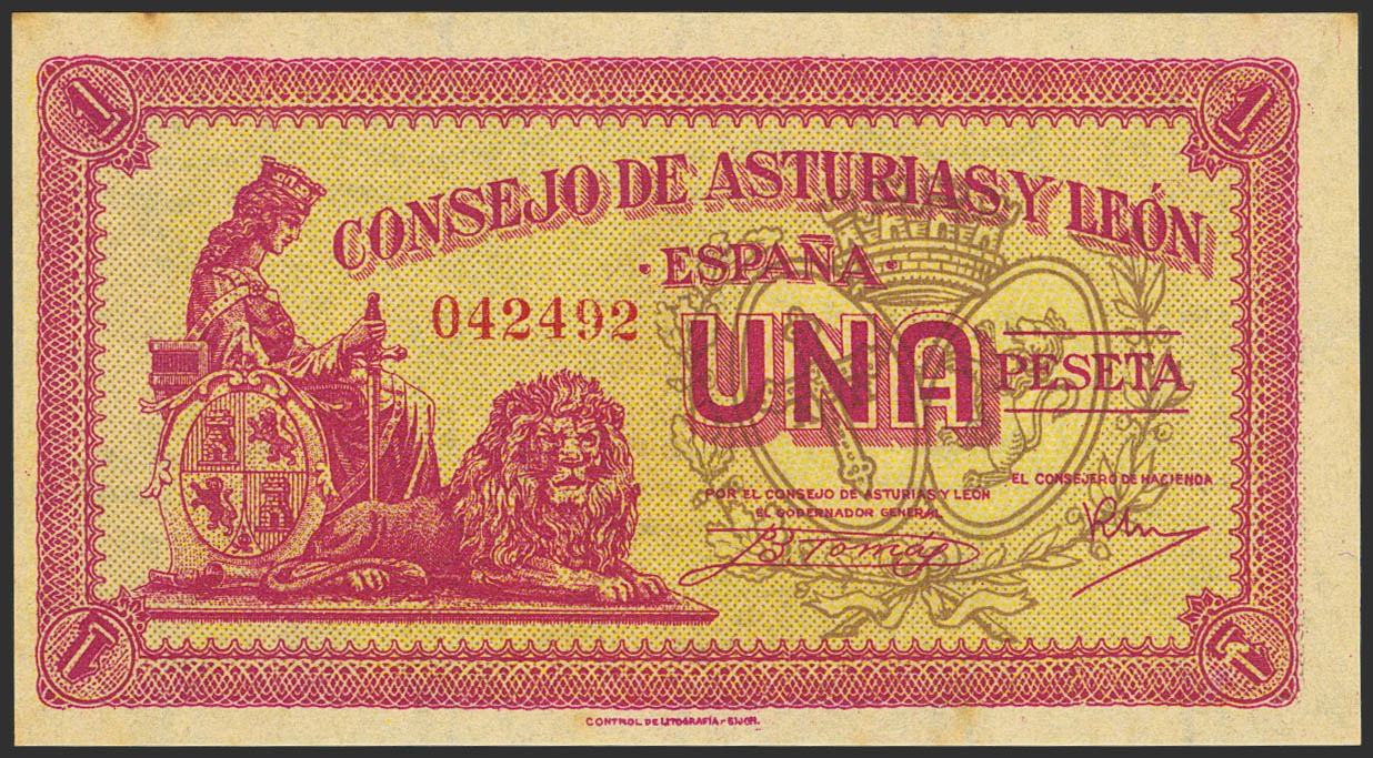 1 Peseta. 1937. Asturias y León. Sin serie. (Edifil 2023: 397). Apresto original, habituales puntitos del tiempo. SC-.