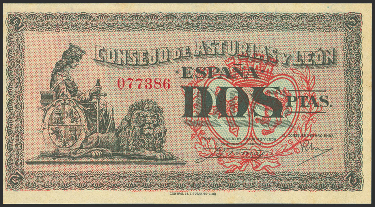2 Pesetas. 1937. Asturias y León. Sin serie. (Edifil 2023: 398). Apresto original. SC.