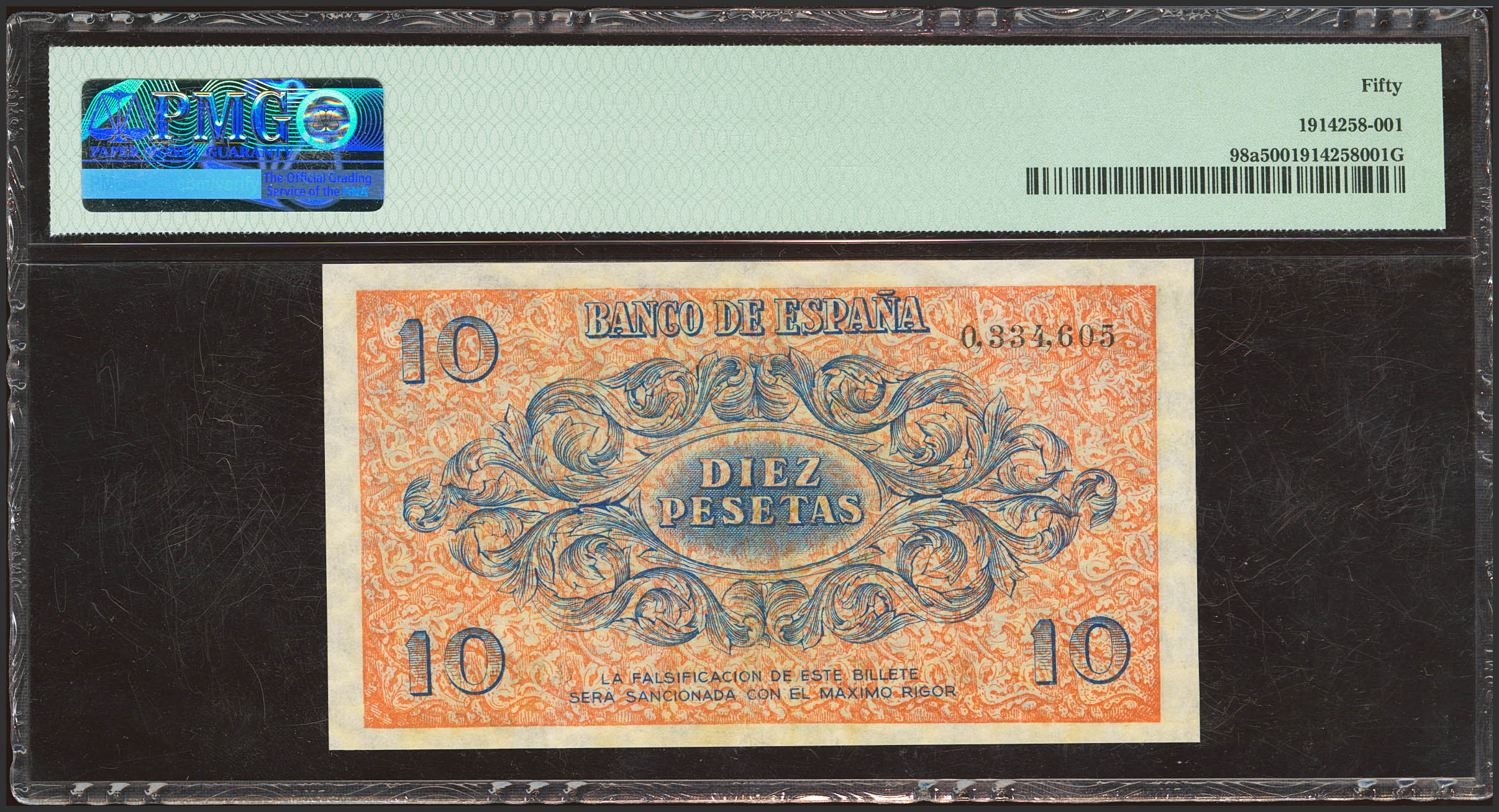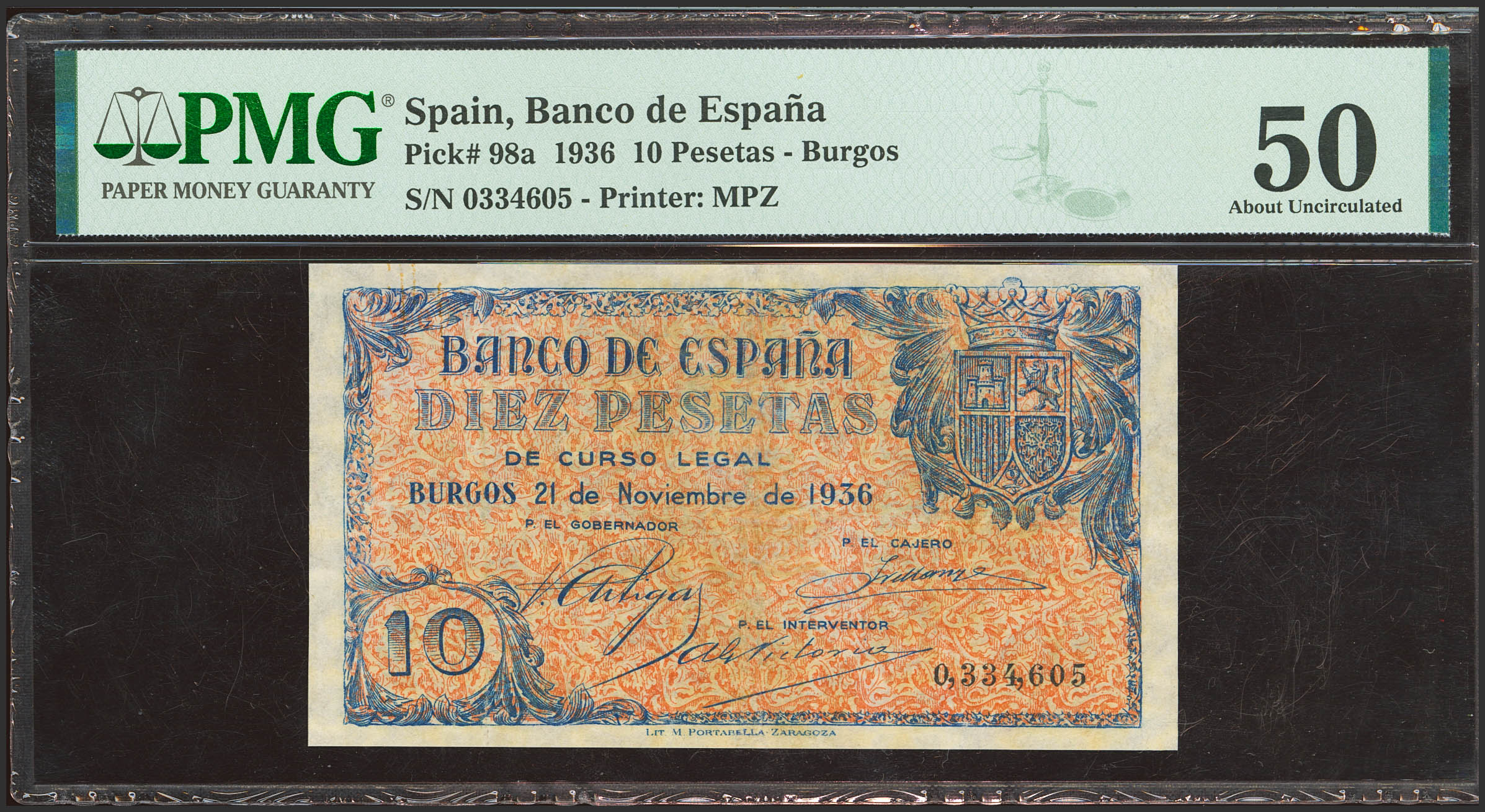 10 Pesetas. 21 de Noviembre de 1936. Sin serie. (Edifil 2023: 418). Raro en esta calidad. EBC. Encapsulado PMG50.