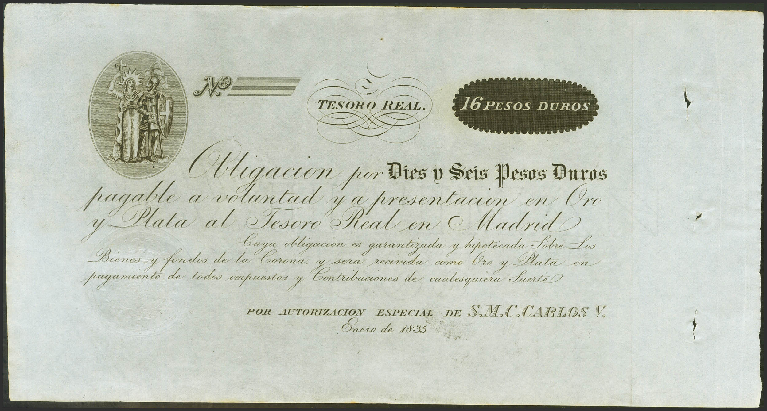 16 Pesos Duros. Tesoro Real. Enero 1835. Sin numeración. (Edifil 2021: 19). EBC+++.