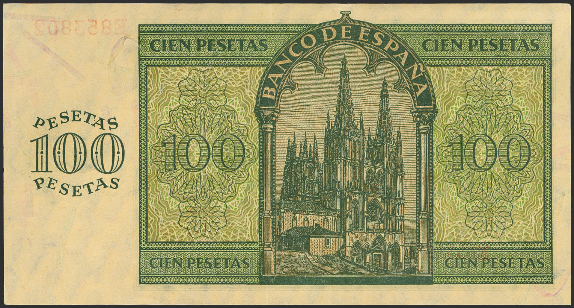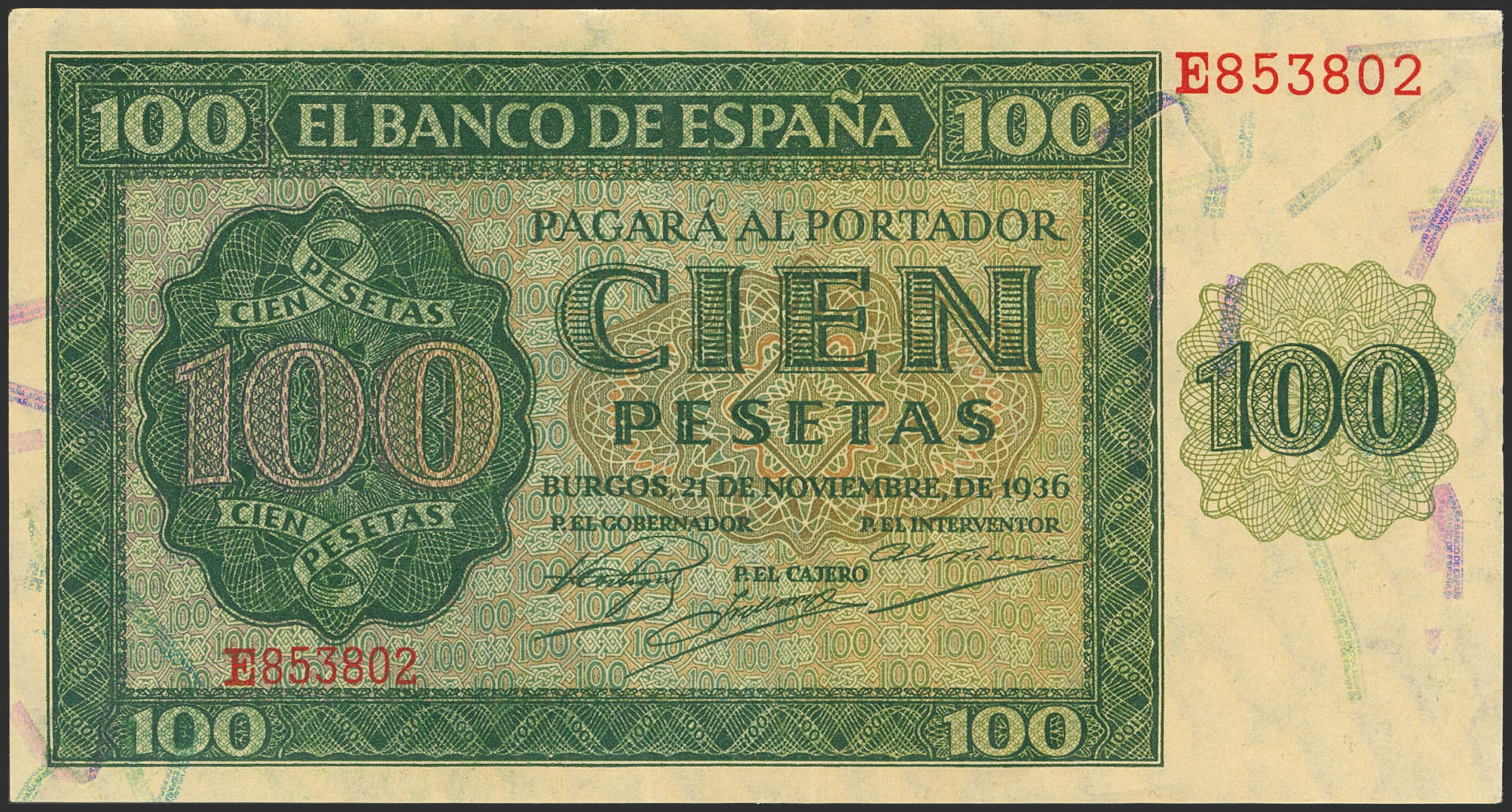 100 Pesetas. 21 de Noviembre de 1936. Serie E. (Edifil 2021: 421a). Conserva parte de su apresto original. EBC.