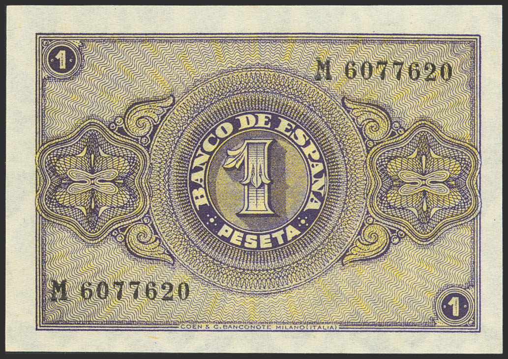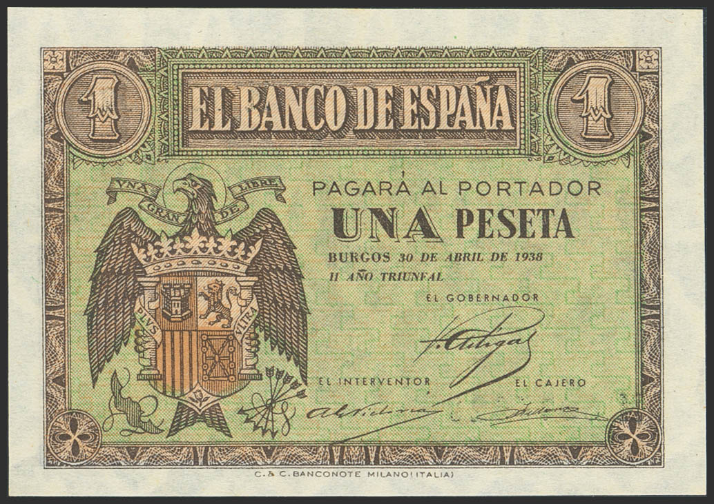 1 Peseta. 30 de Abril de 1938. Serie M. (Edifil 2023: 428a). Apresto original. SC.