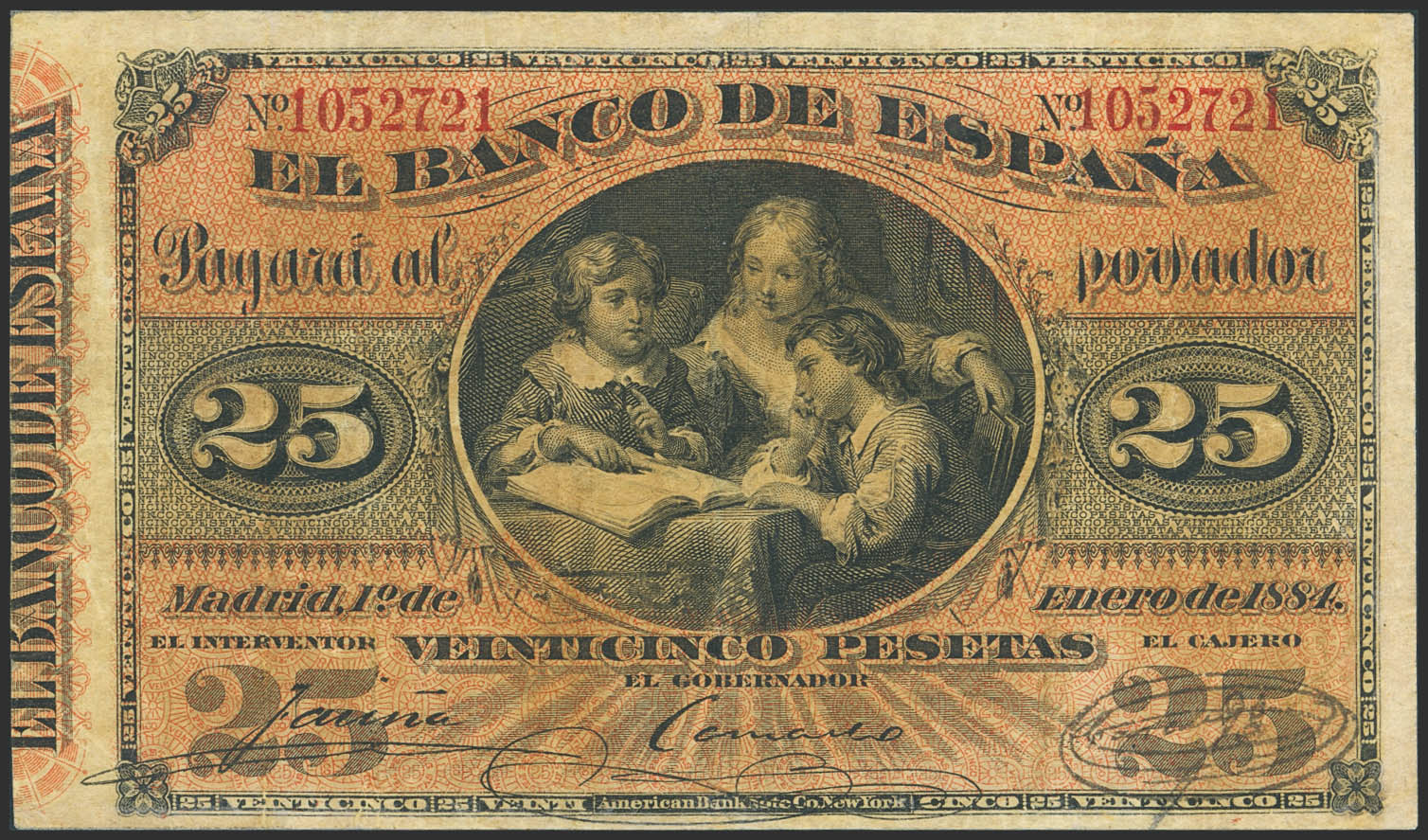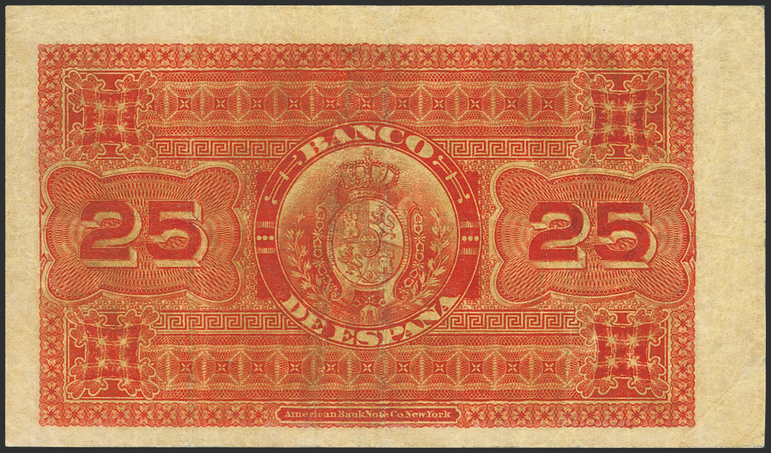 25 Pesetas. 1 de Enero de 1884. Sin serie. (Edifil 2023: 282, Pick: 24). Inusual, mínimamente reparado. MBC+.