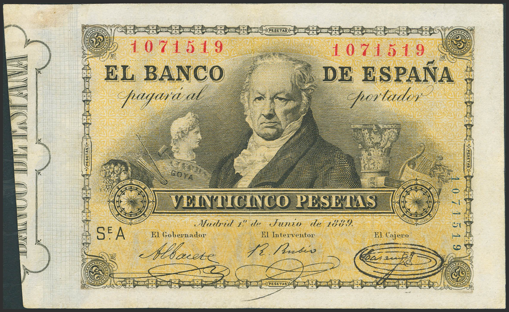 25 Pesetas. 1 de Junio de 1889. Serie A. (Edifil 2023: 297). Inusual, reparado. MBC+.