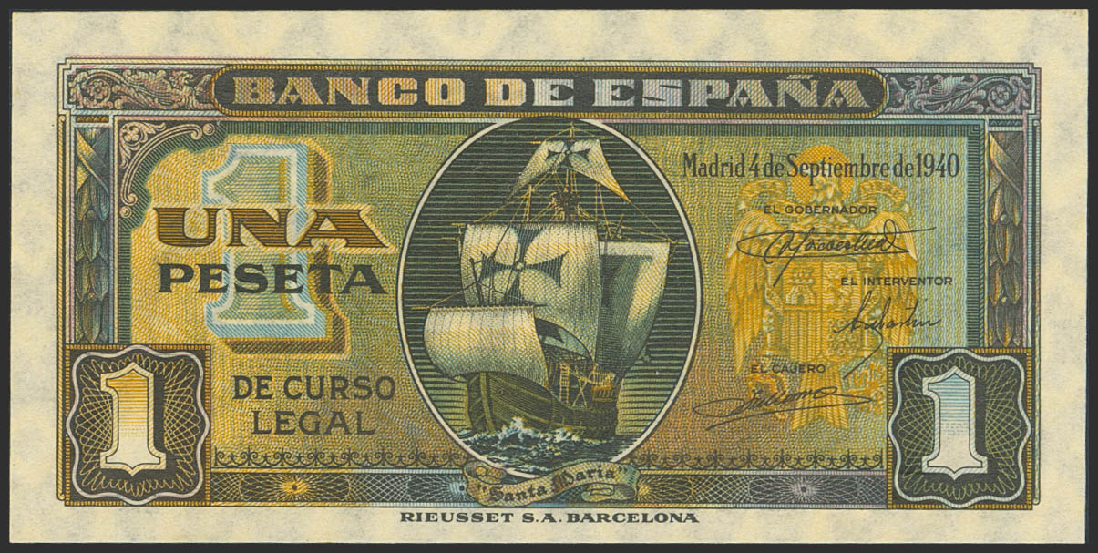 1 Peseta. 4 de Septiembre de 1940. Serie E. (Edifil 2023: 442a). Apresto original. SC-.