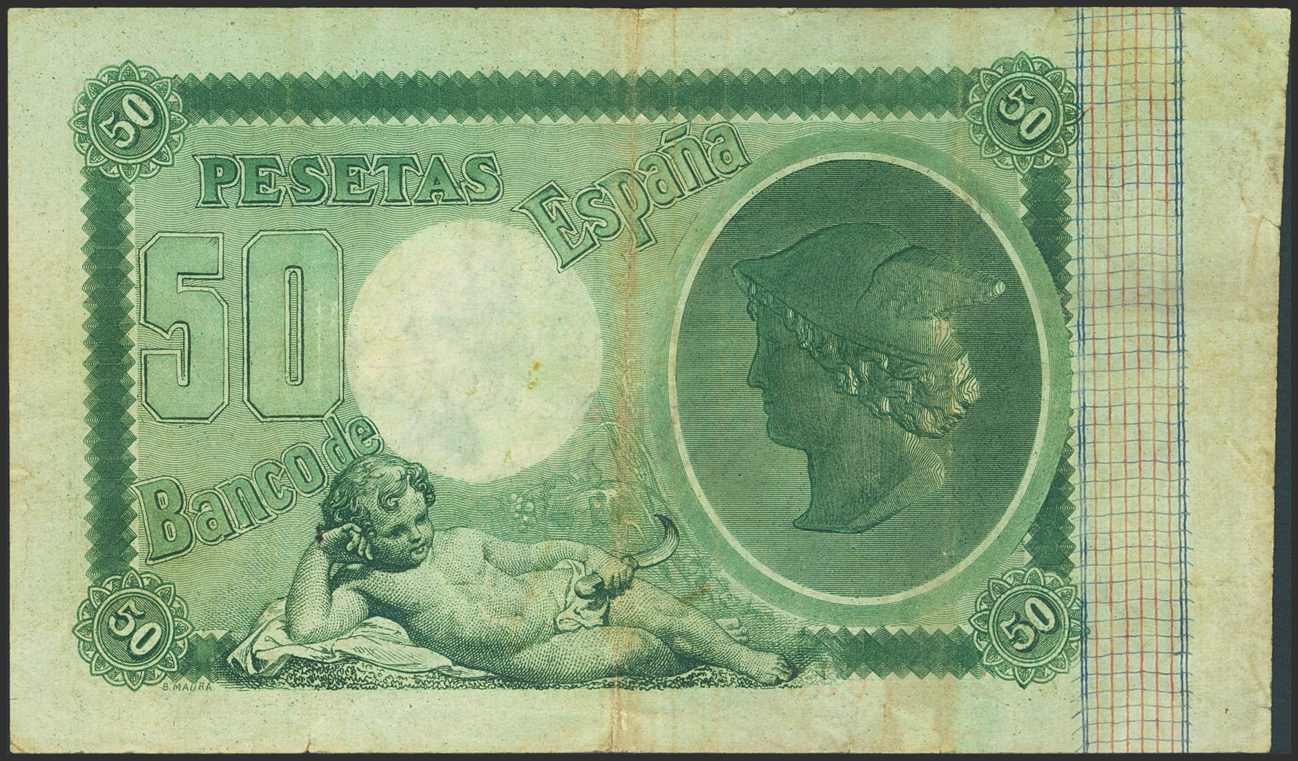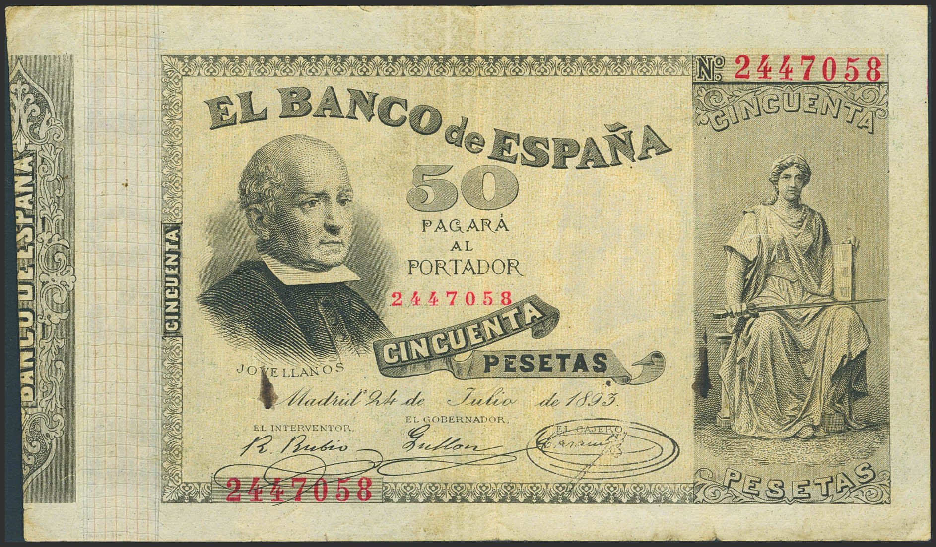 50 Pesetas. 24 de Julio de 1893. Sin serie. (Edifil 2021: 301). Raro, especialmente sin reparaciones. MBC-.