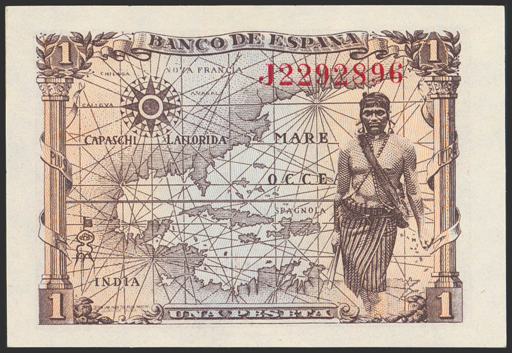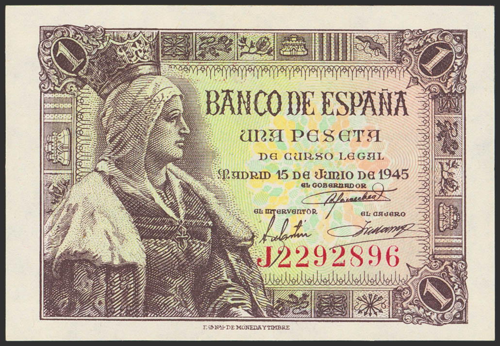 1 Peseta. 15 de Junio de 1945. Serie J. (Edifil 2023: 448a). Apresto original. SC.