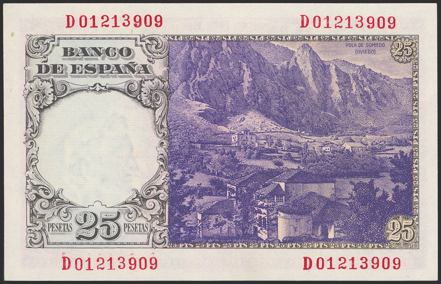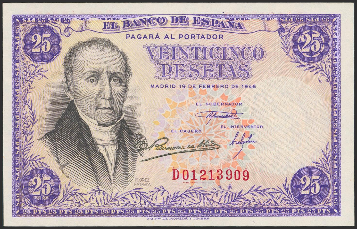 25 Pesetas. 19 de Febrero de 1946. Serie D. (Edifil 2023: 450a). Apresto original. SC.