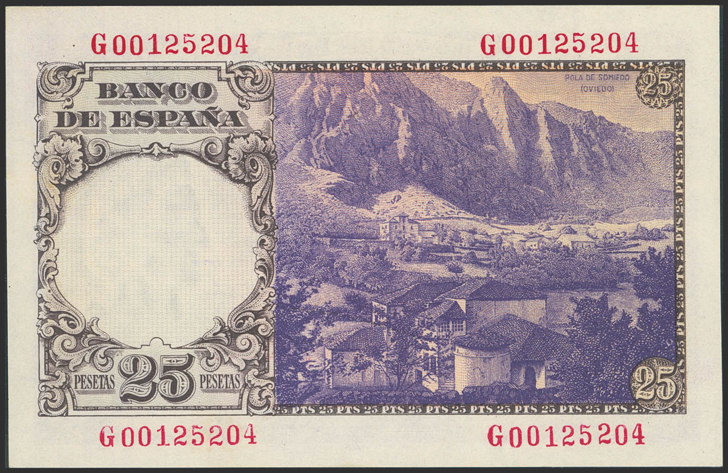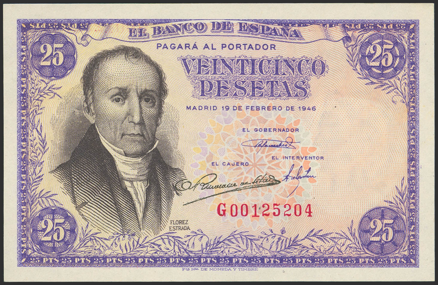 25 Pesetas. 19 de Febrero de 1946. Serie G. (Edifil 2021: 450a). Apresto original. SC.