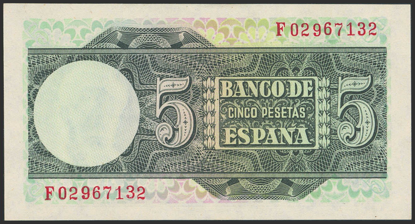 5 Pesetas. 15 de Marzo de 1948. Serie F. (Edifil 2023: 455a, Pick: 136a). Apresto original. SC-.