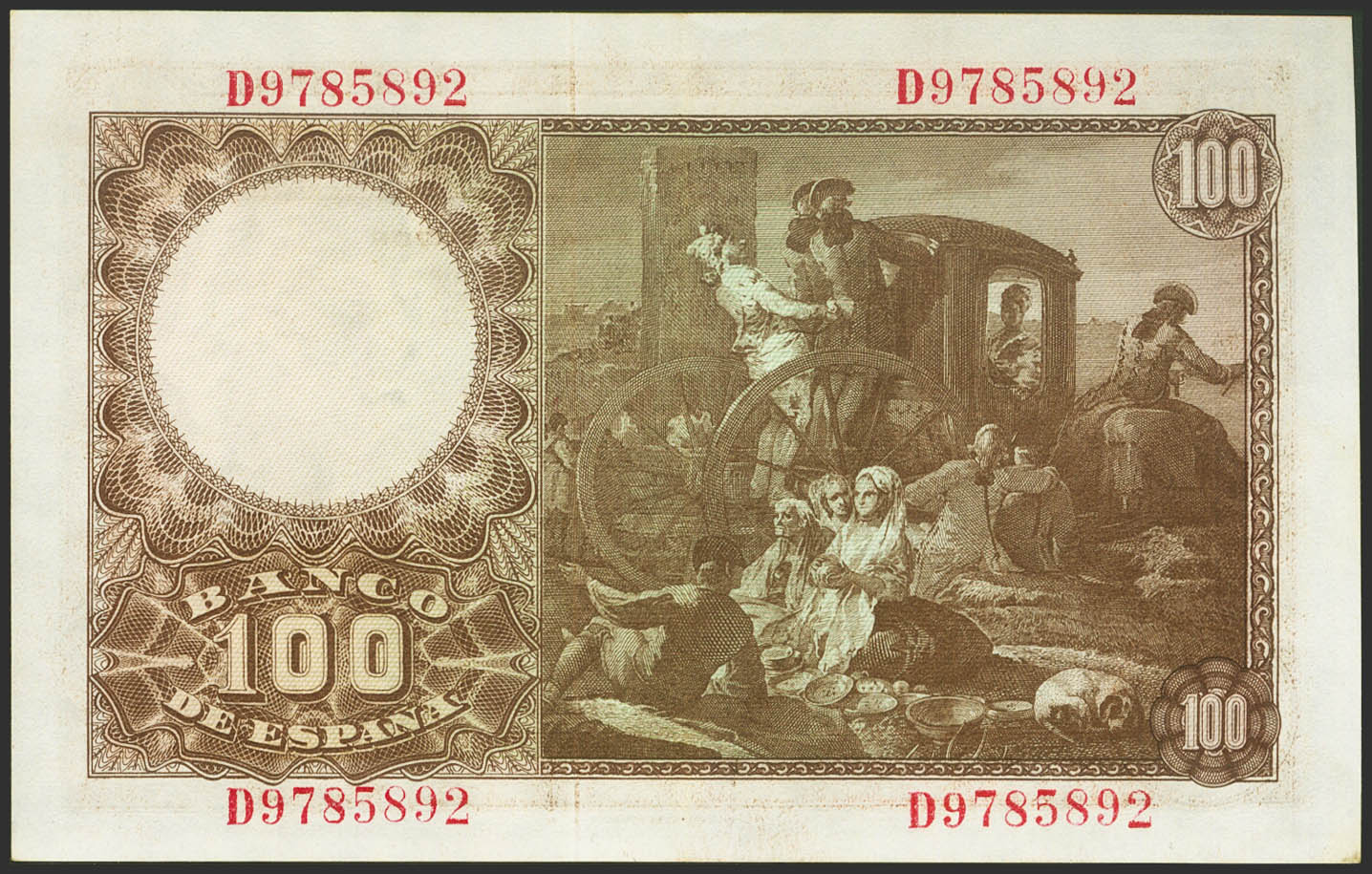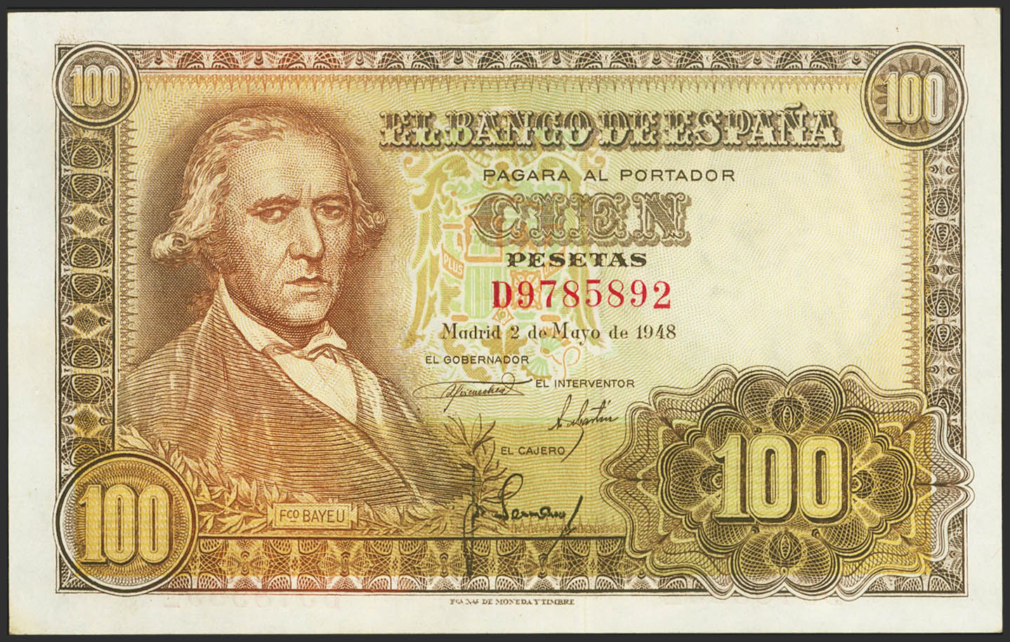 100 Pesetas. 2 de Mayo de 1948. Serie D. (Edifil 2023: 456a). Conserva parte del apresto original. EBC.
