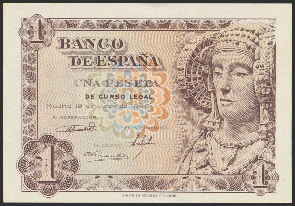 1 Peseta. 19 de Junio de 1948. Sin serie. (Edifil 2021: 457). Apresto original. SC-.