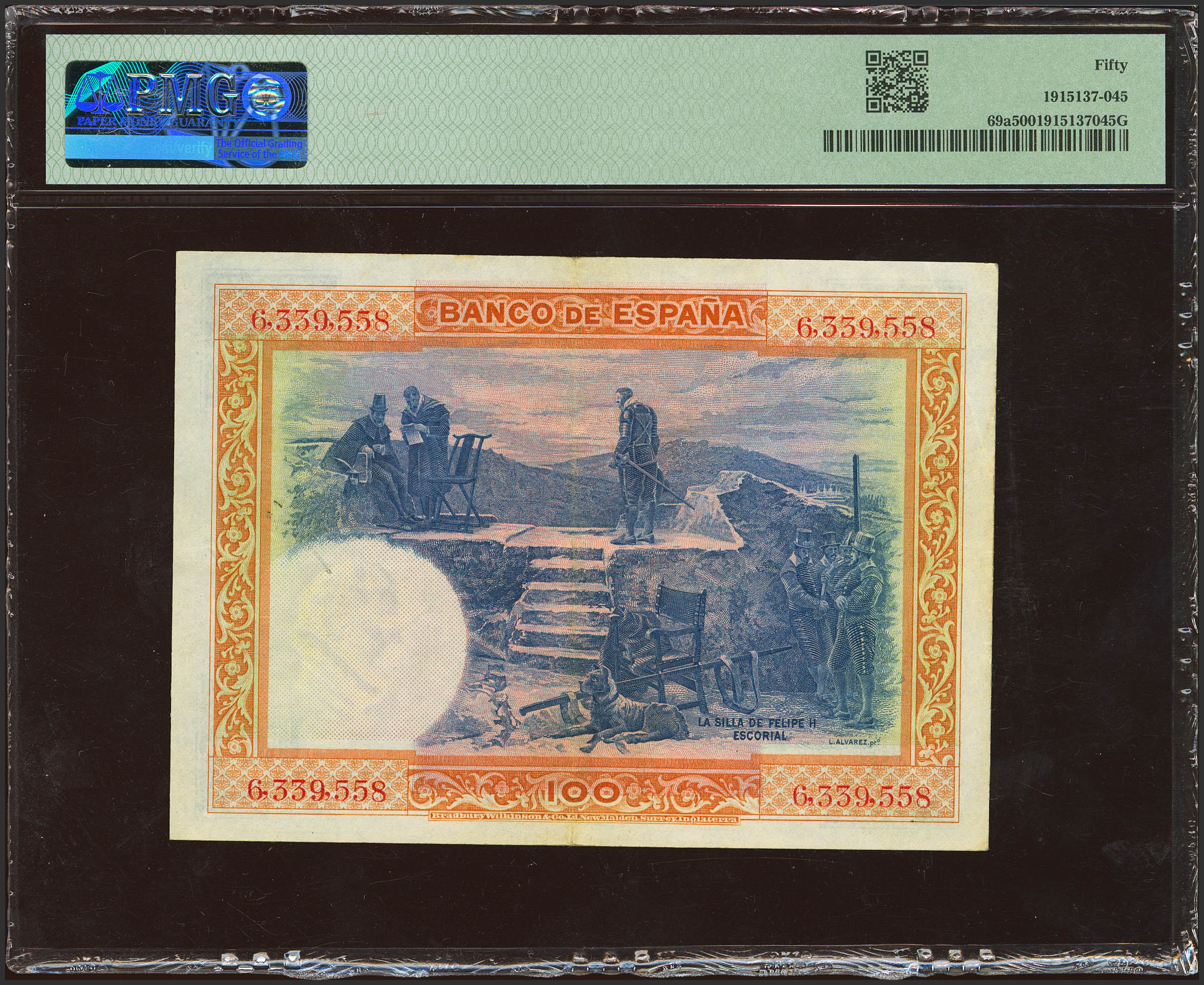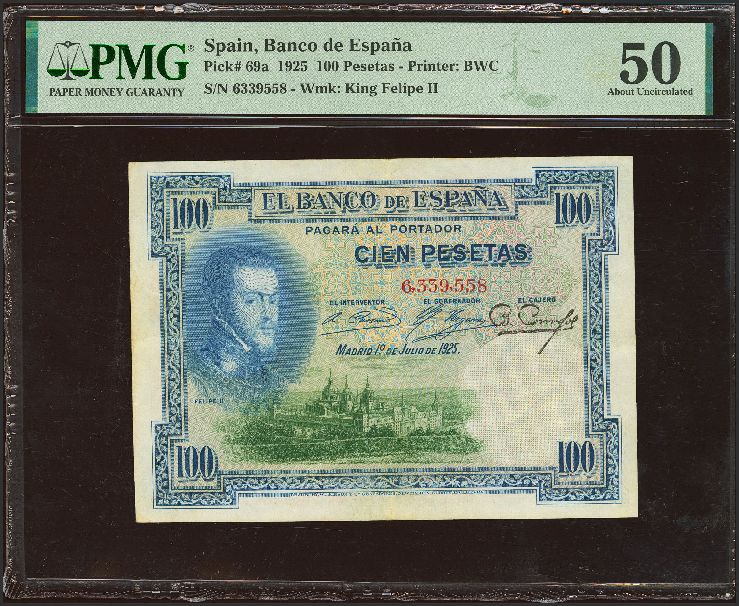 100 Pesetas. 1 de Julio de 1925. Sin serie. (Edifil 2023: 323, Pick: 69a). Inusual en esta calidad. EBC. Encapsulado PMG50.