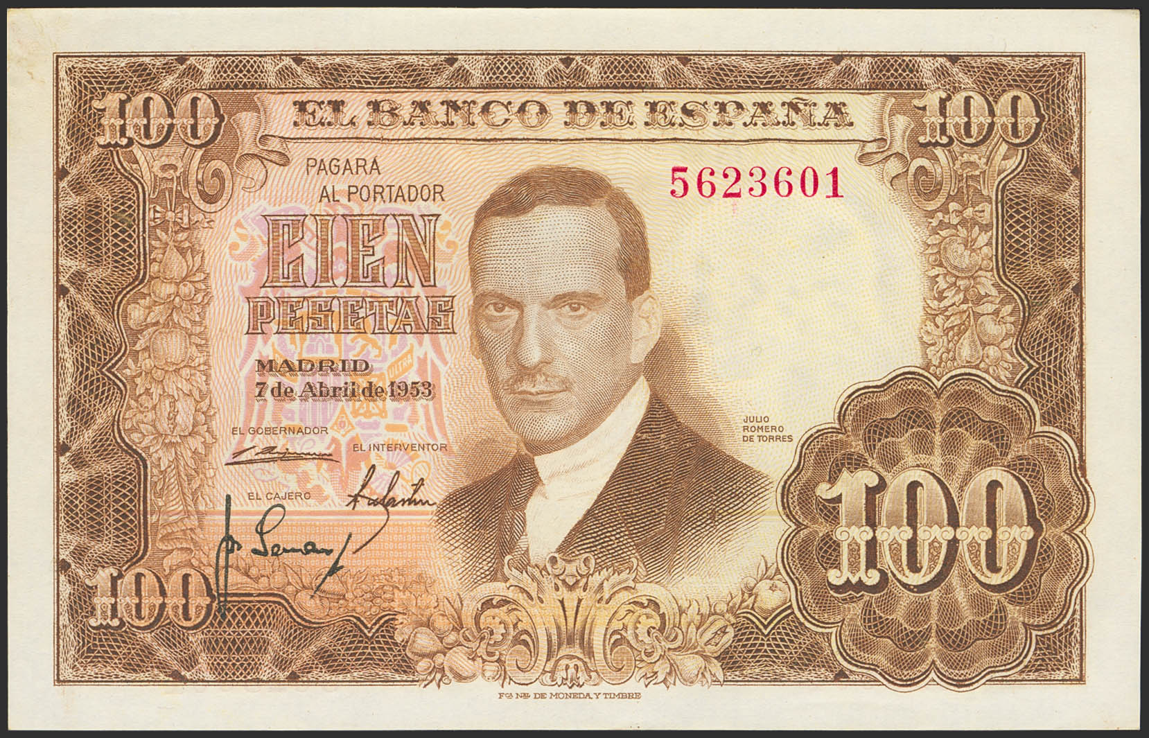 100 Pesetas. 7 de Abril de 1953. Sin serie. (Edifil 2023: 464). Conserva todo su apresto original. SC-.