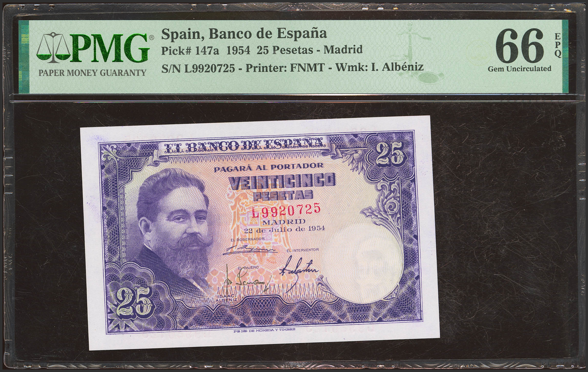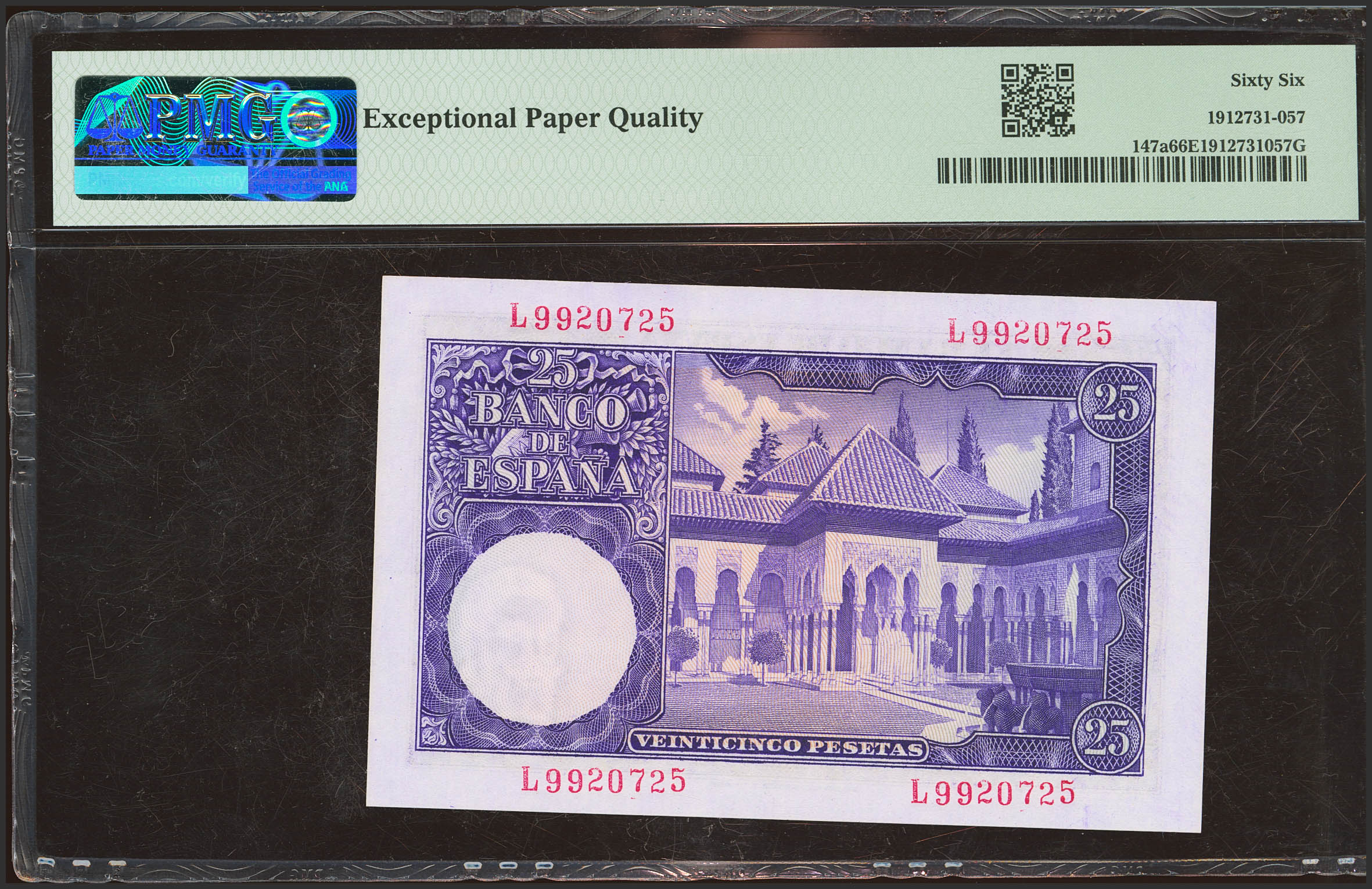 25 Pesetas. 22 de Julio de 1954. Serie L. (Edifil 2023: 467a). Apresto original. SC. Encapsulado PMG66EPQ.