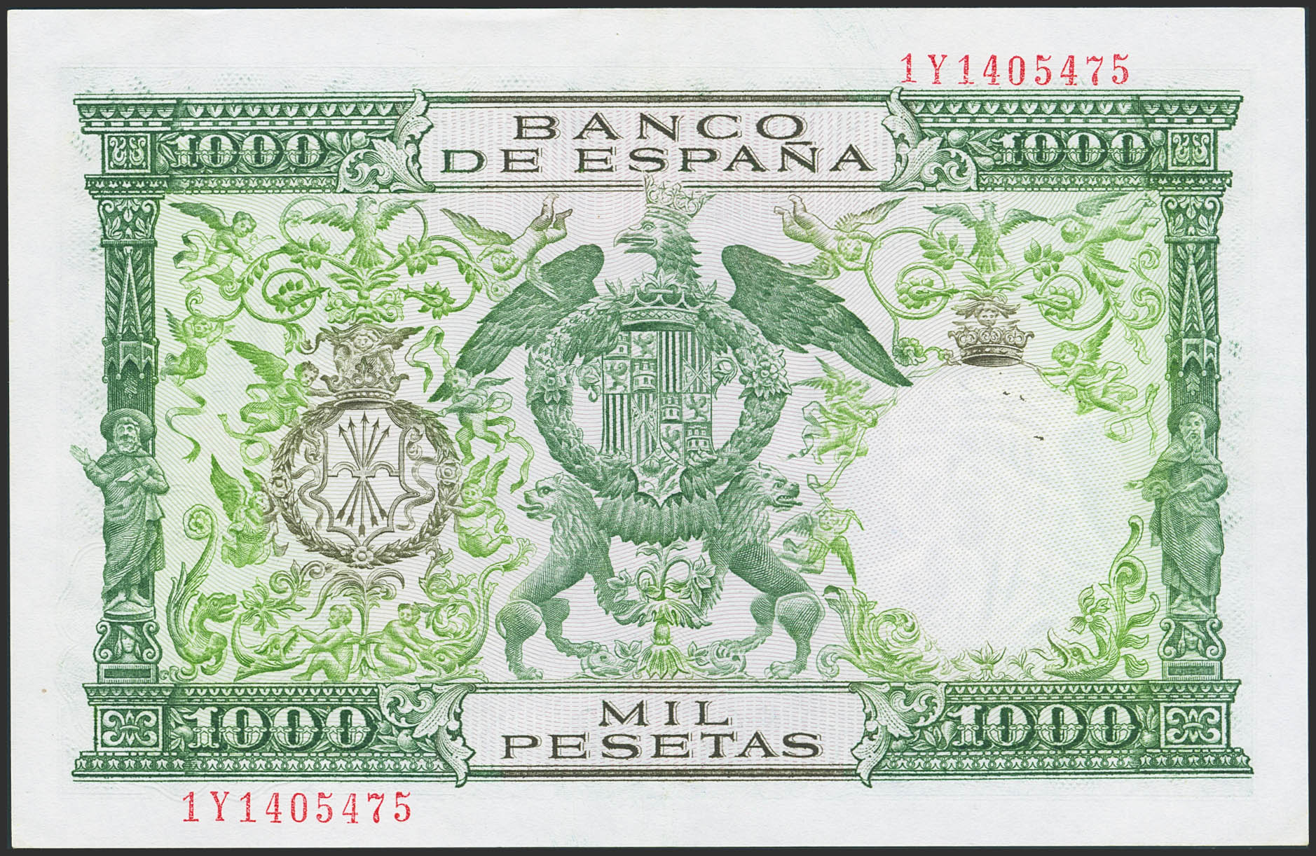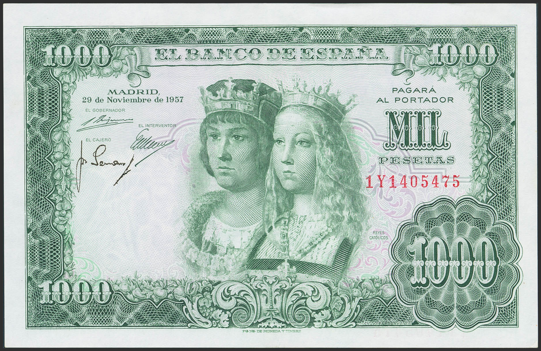 1000 Pesetas. 29 de Noviembre de 1957. Serie 1Y, última serie emitida. (Edifil 2023: 469c). Conserva todo su apresto original. EBC+++.