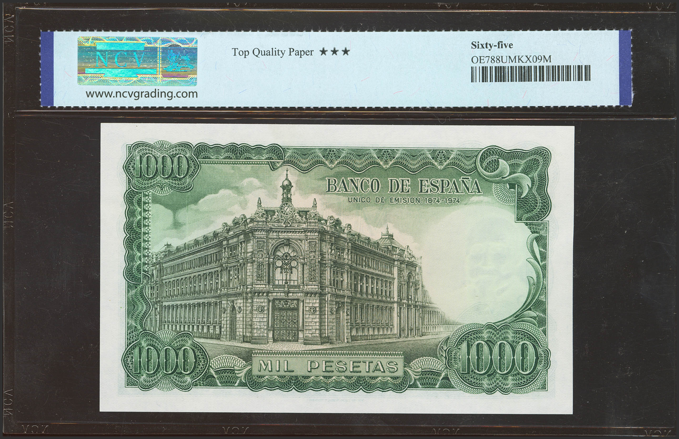 1000 Pesetas. 17 de Septiembre de 1971. Serie 5M. (Edifil 2021: 474c, Pick: 154). Inusual en esta calidad, apresto original. SC. Encapsulado NCV65TQP.