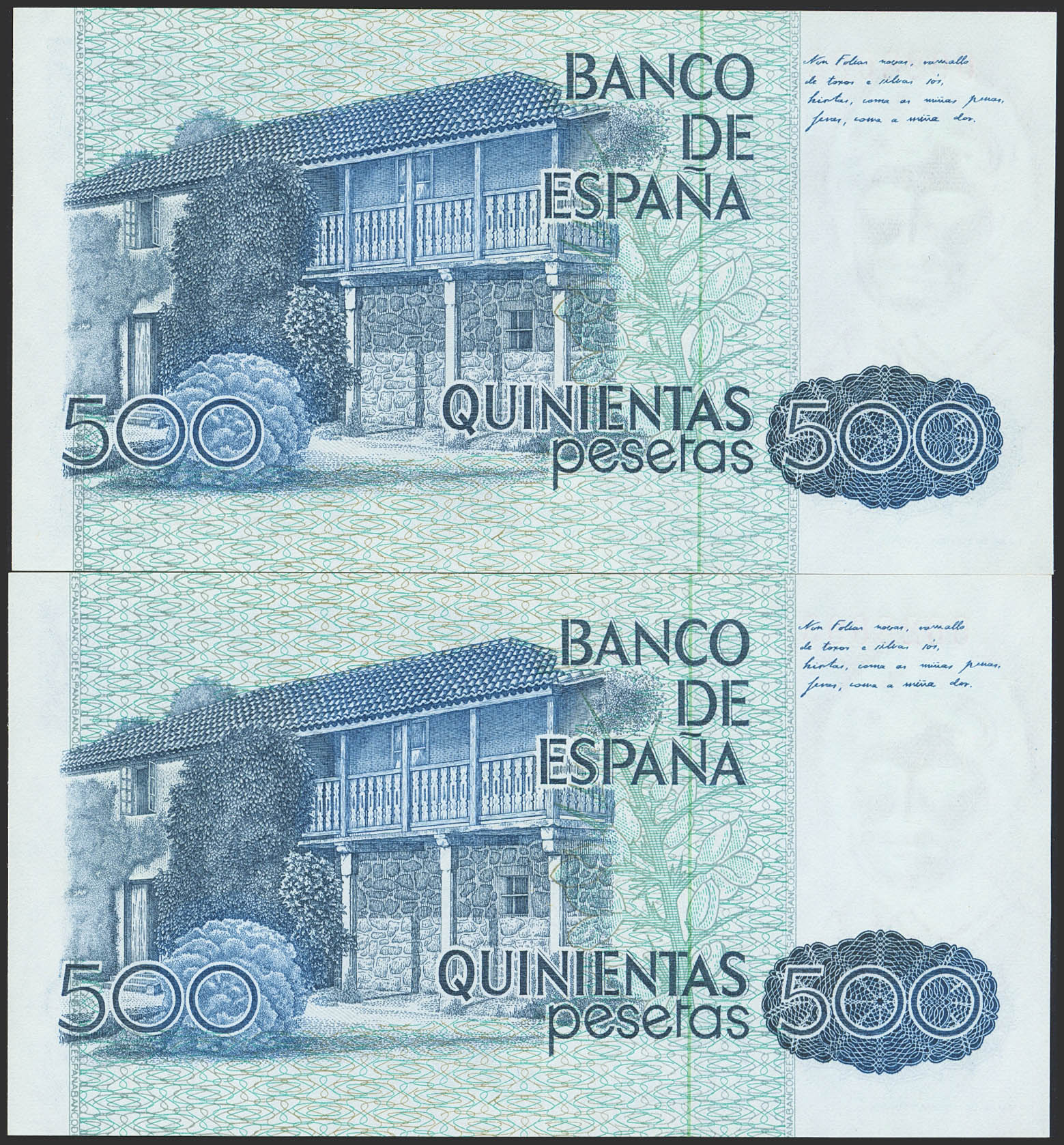 500 Pesetas. 23 de Octubre de 1979. Pareja correlativa. Sin serie y numeración baja. (Edifil 2023: 476). SC.