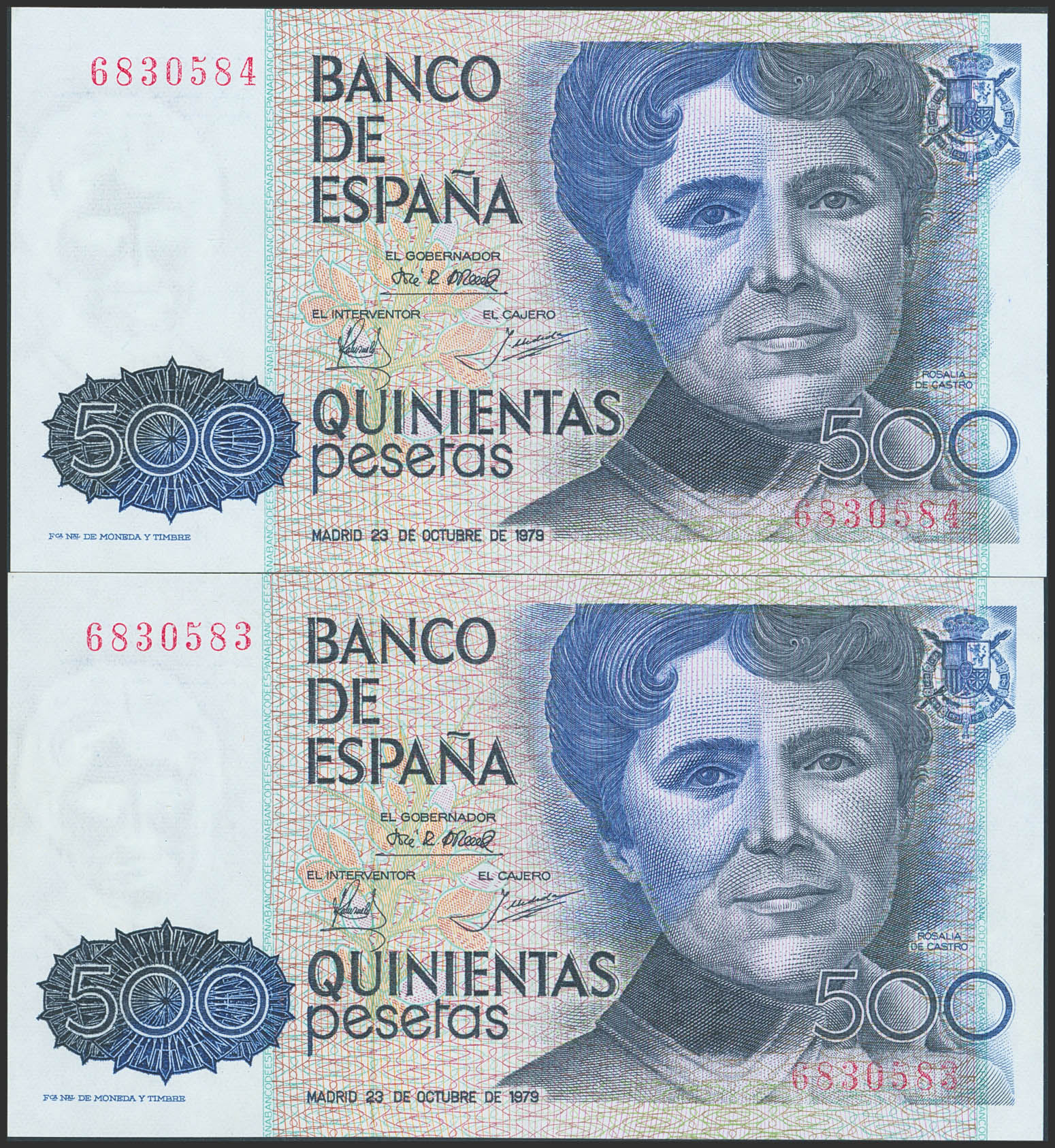 500 Pesetas. 23 de Octubre de 1979. Pareja correlativa. Sin serie. (Edifil 2023: 476). SC.
