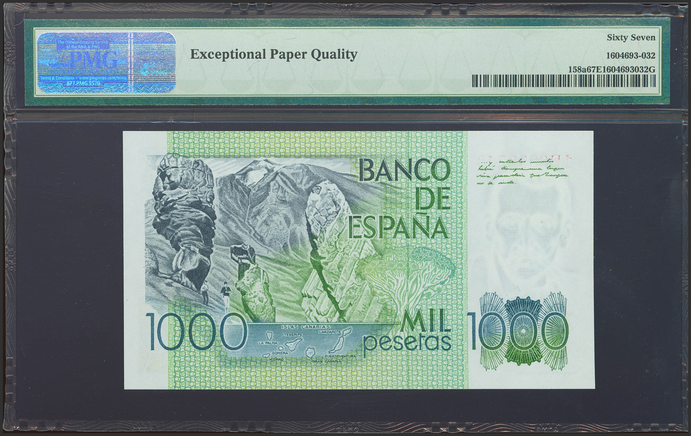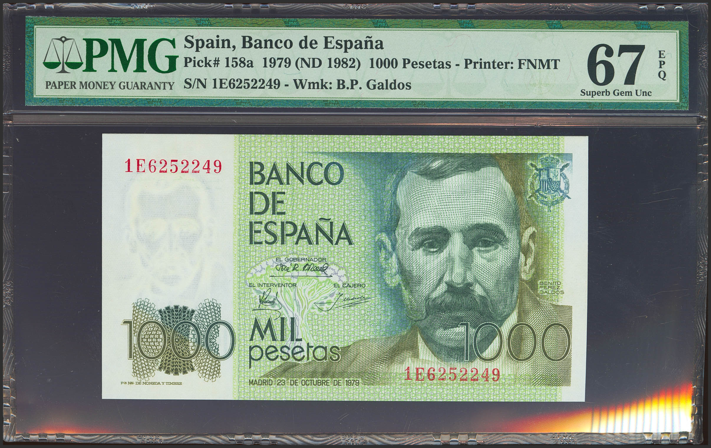 1000 Pesetas. 23 de Octubre de 1979. Serie 1E. (Edifil 2023: 477a, Pick: 158a). SC. Encapsulado PMG67EPQ.