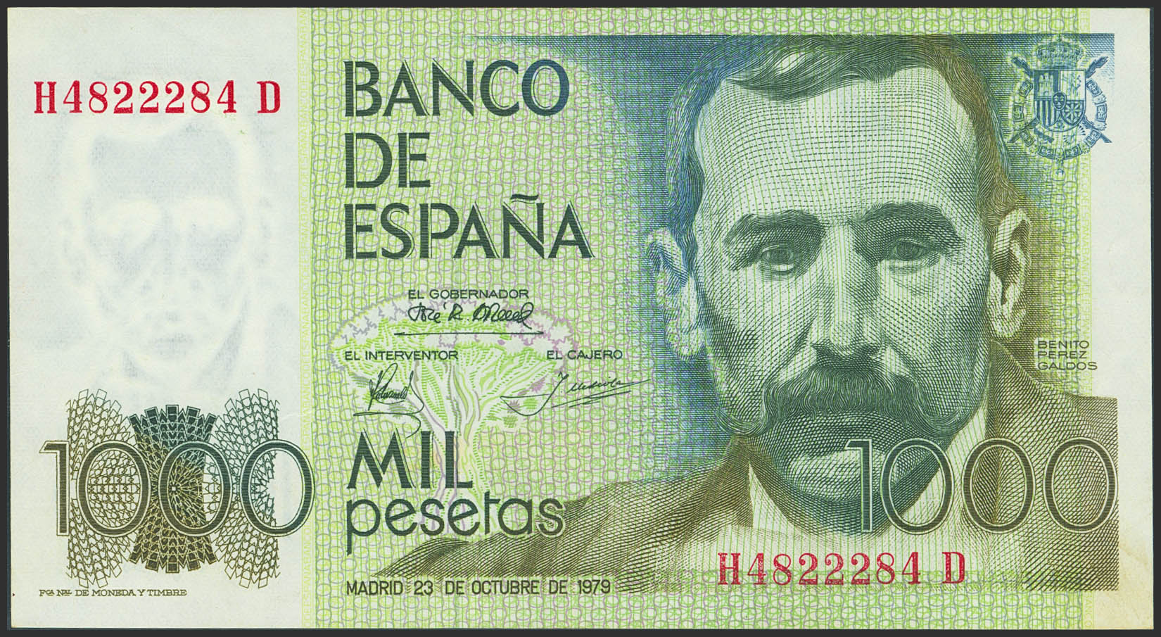1000 Pesetas. 23 de Octubre de 1979. Serie H-D y numeración capicúa. (Edifil 2021: 477a). EBC.