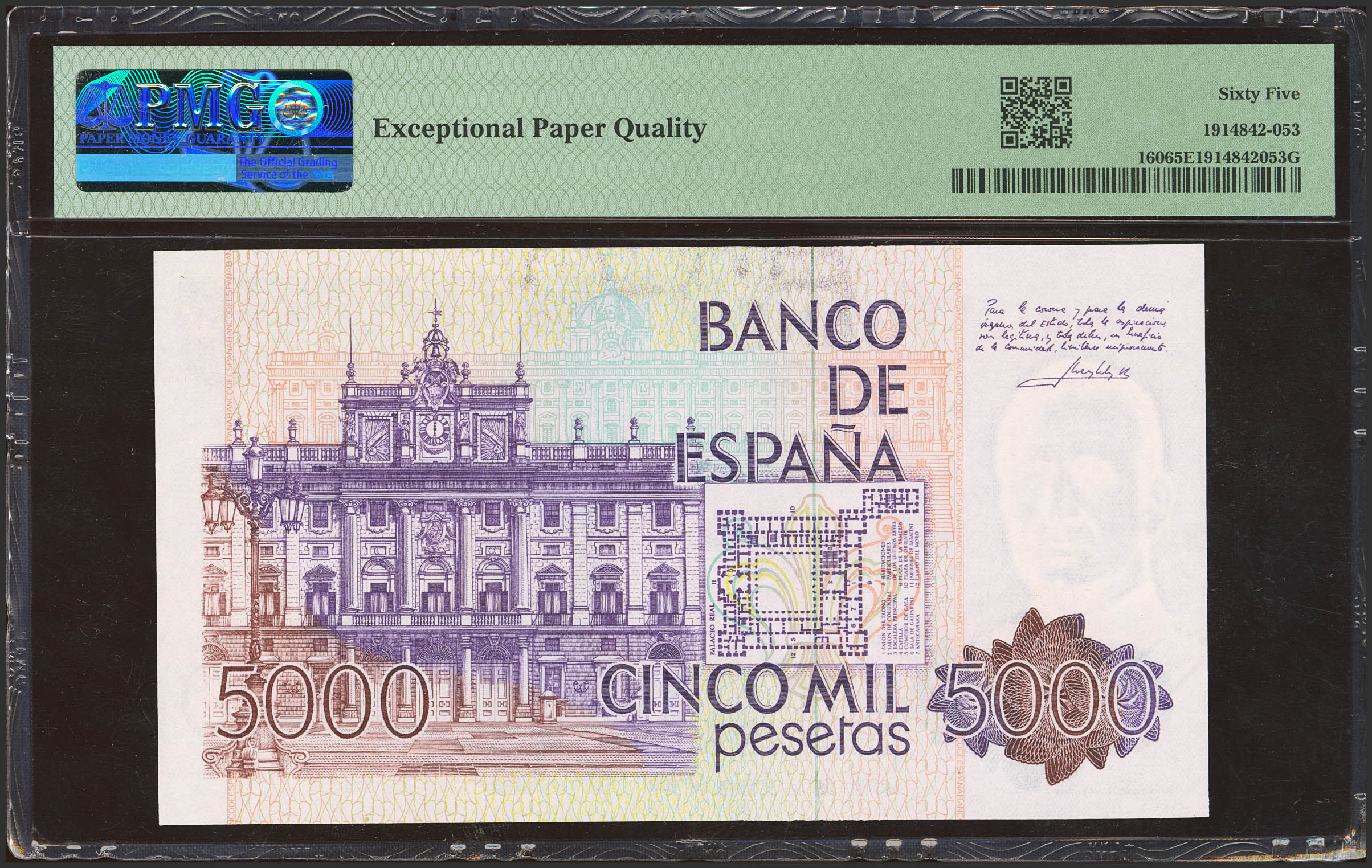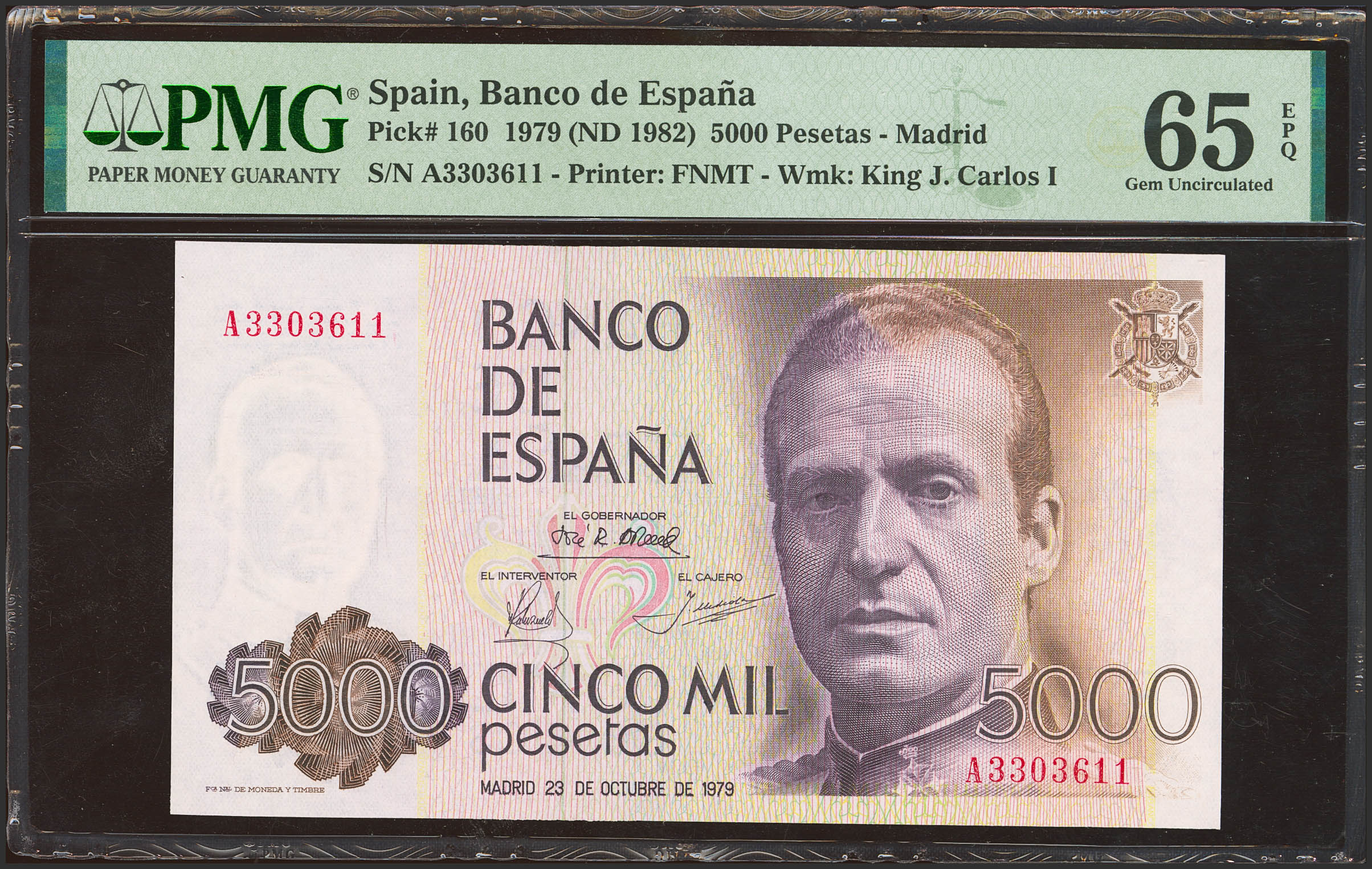 5000 Pesetas. 23 de Octubre de 1979. Serie A. (Edifil 2023: 478a, Pick: 160). SC. Encapsulado PMG65EPQ.