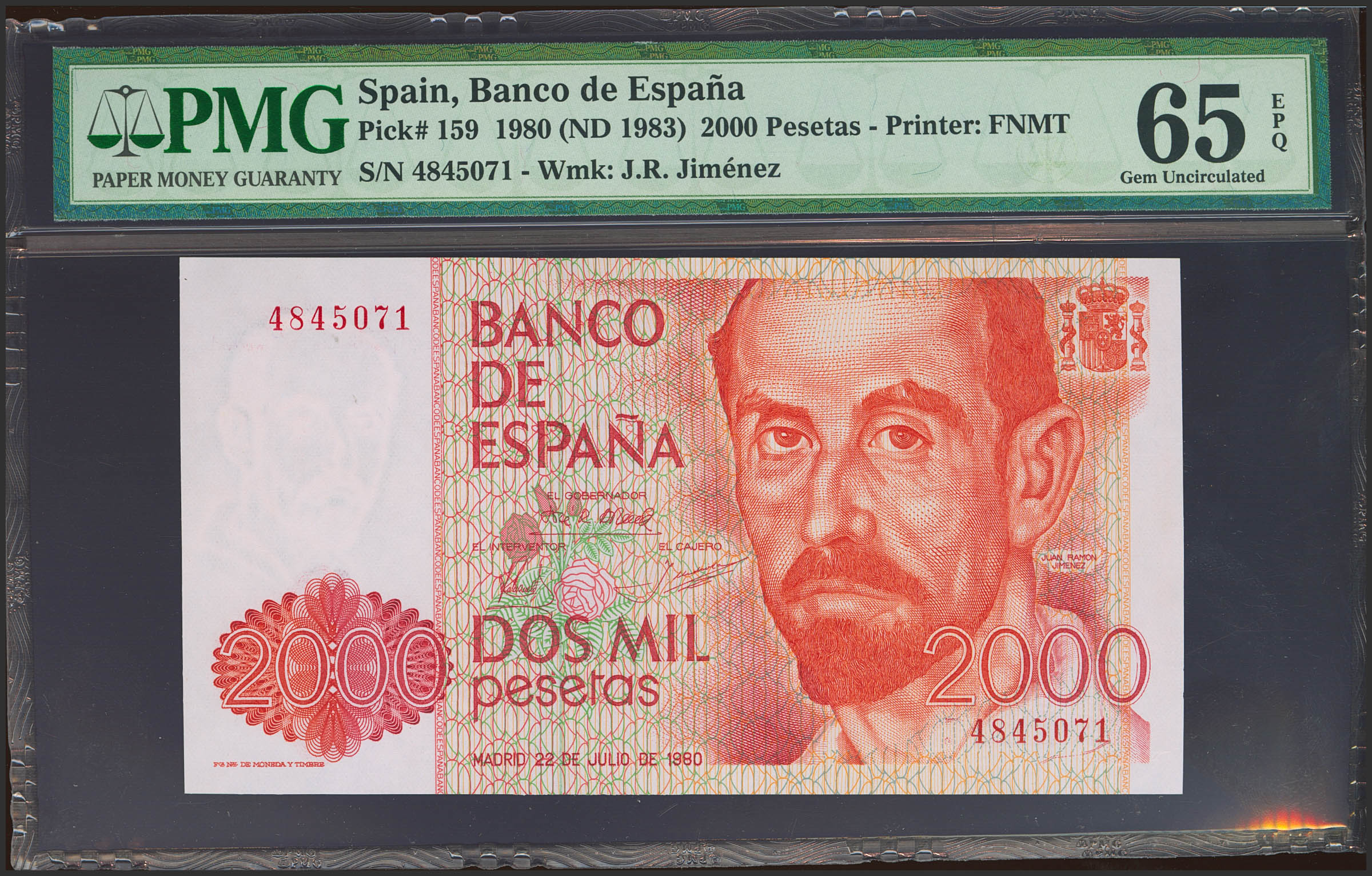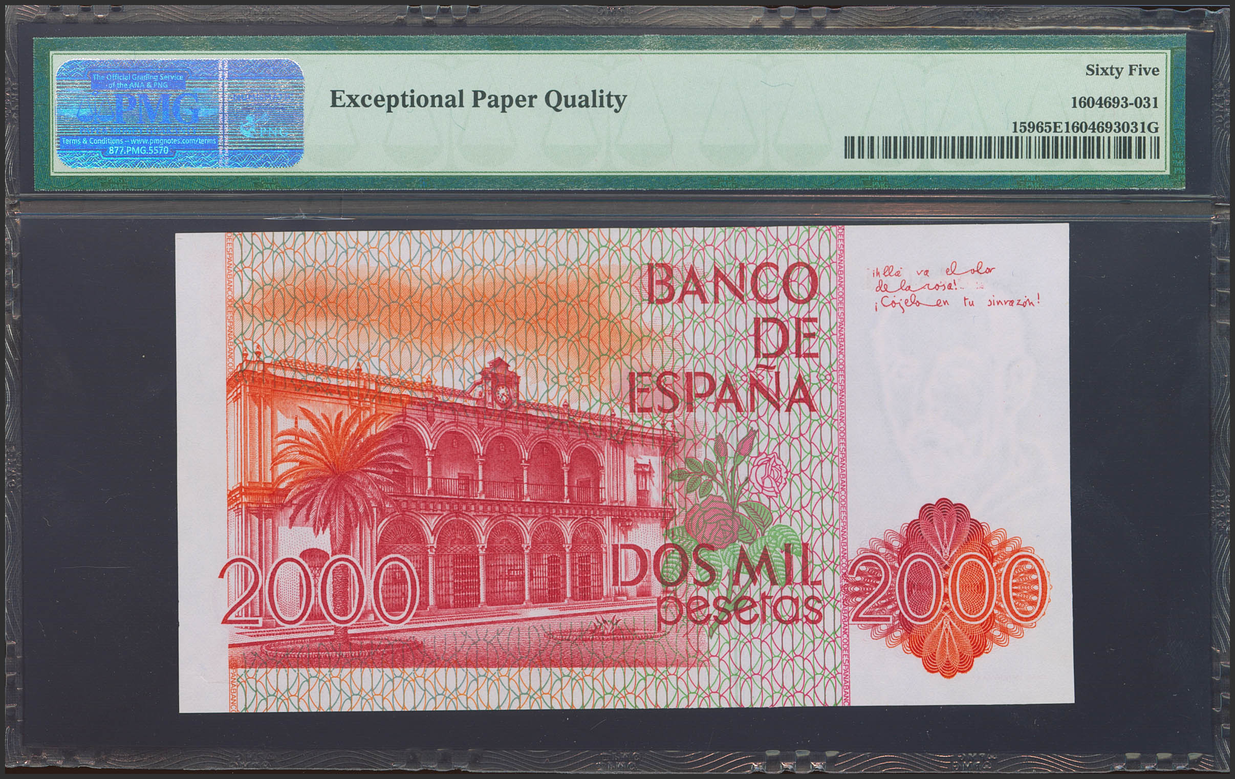 2000 Pesetas. 22 de Julio de 1980. Sin serie. (Edifil 2023: 479, Pick: 159). Inusual en esta excepcional calidad. SC. Encapsulado PMG66EPQ.