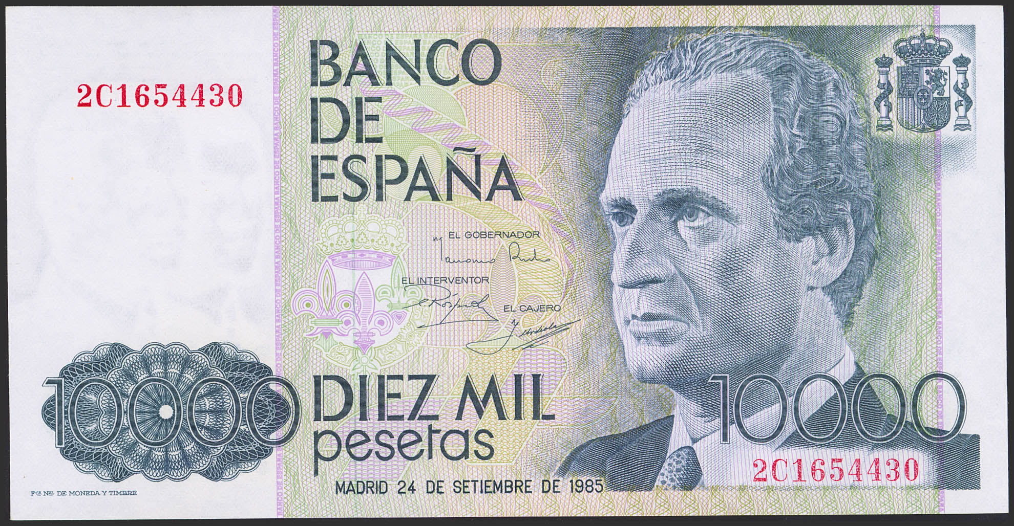 10000 Pesetas. 24 de Septiembre de 1985. Serie 2C, última serie emitida. (Edifil 2023: 481b). SC.