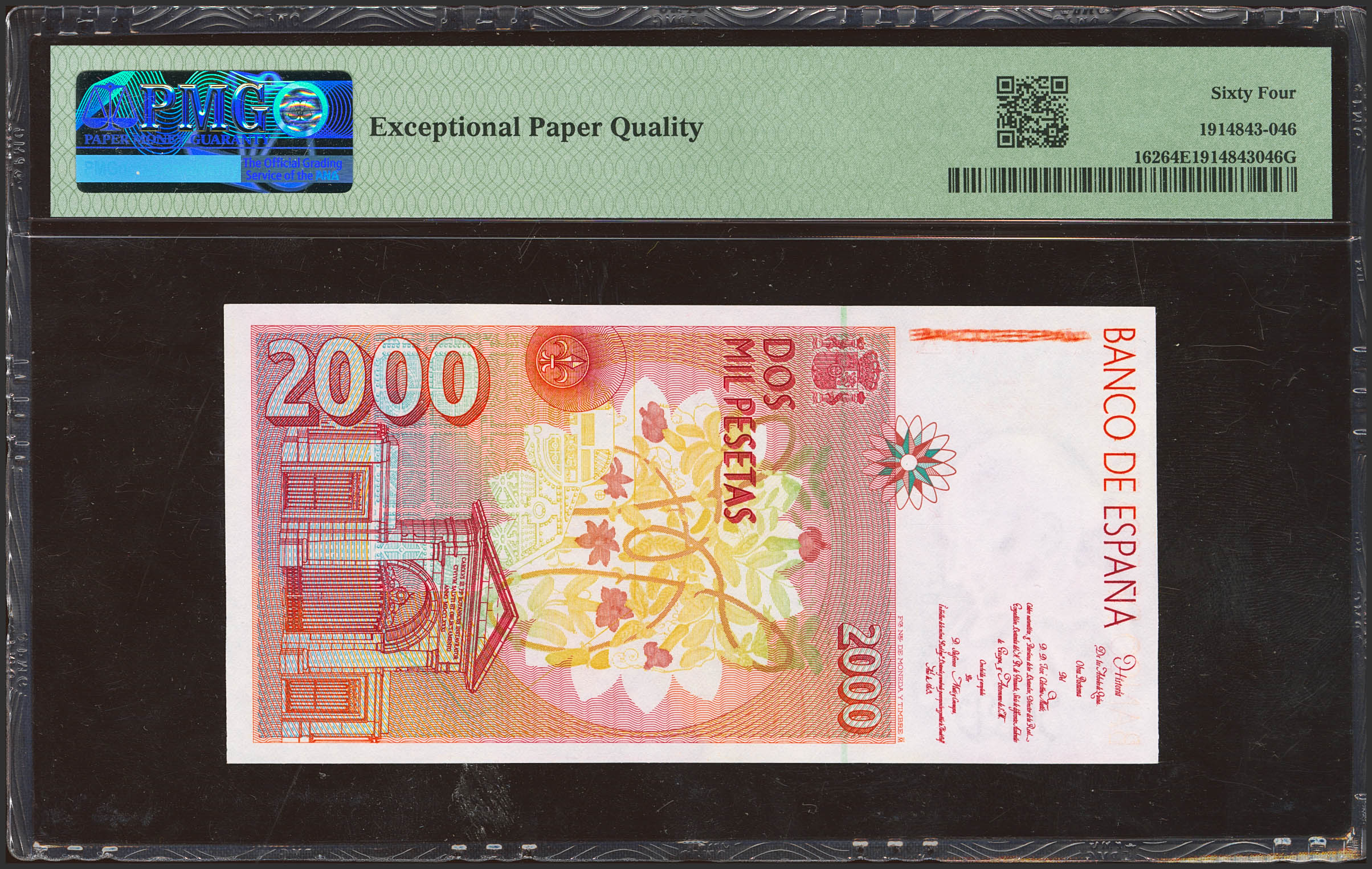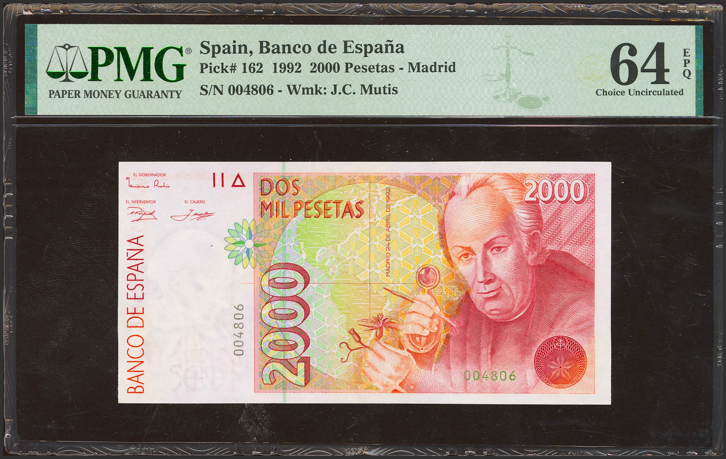 2000 Pesetas. 24 de Abril de 1992. Sin serie y numeración baja. (Edifil 2023: 482, Pick: 162). SC. Encapsulado PMG64EPQ.