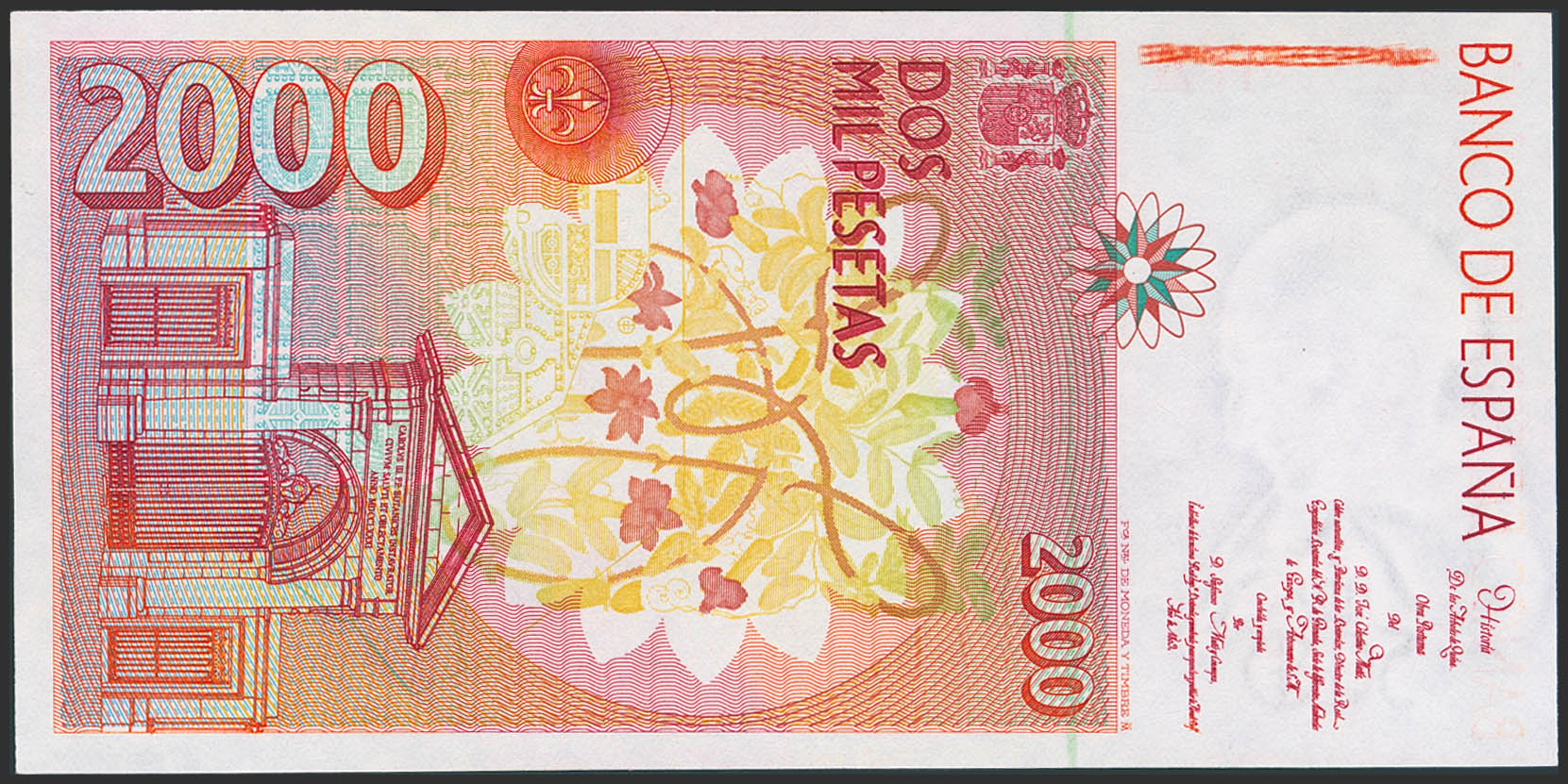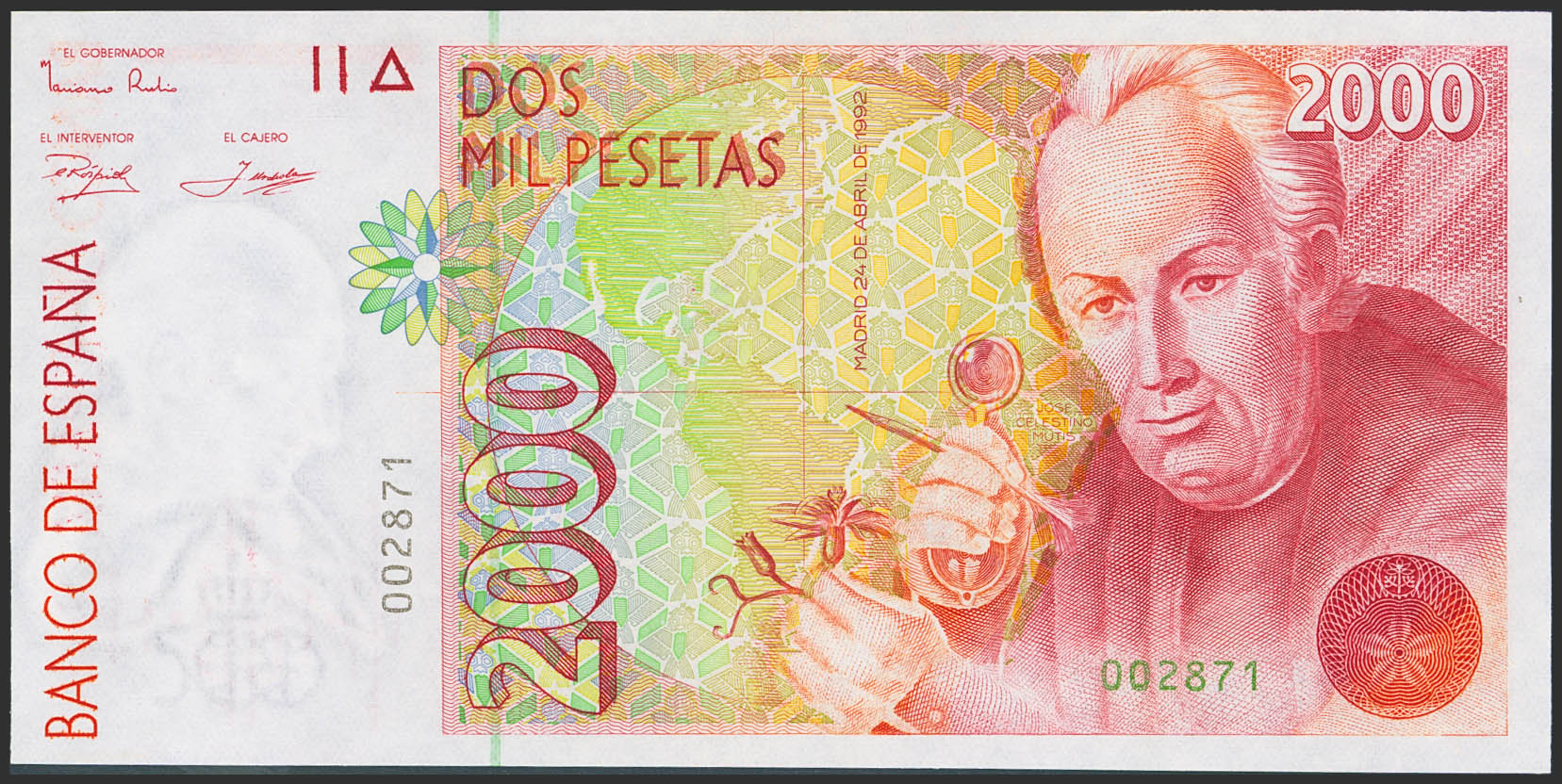 2000 Pesetas. 24 de Abril de 1992. Sin serie y numeración bajísima. (Edifil 2021: 482). SC.