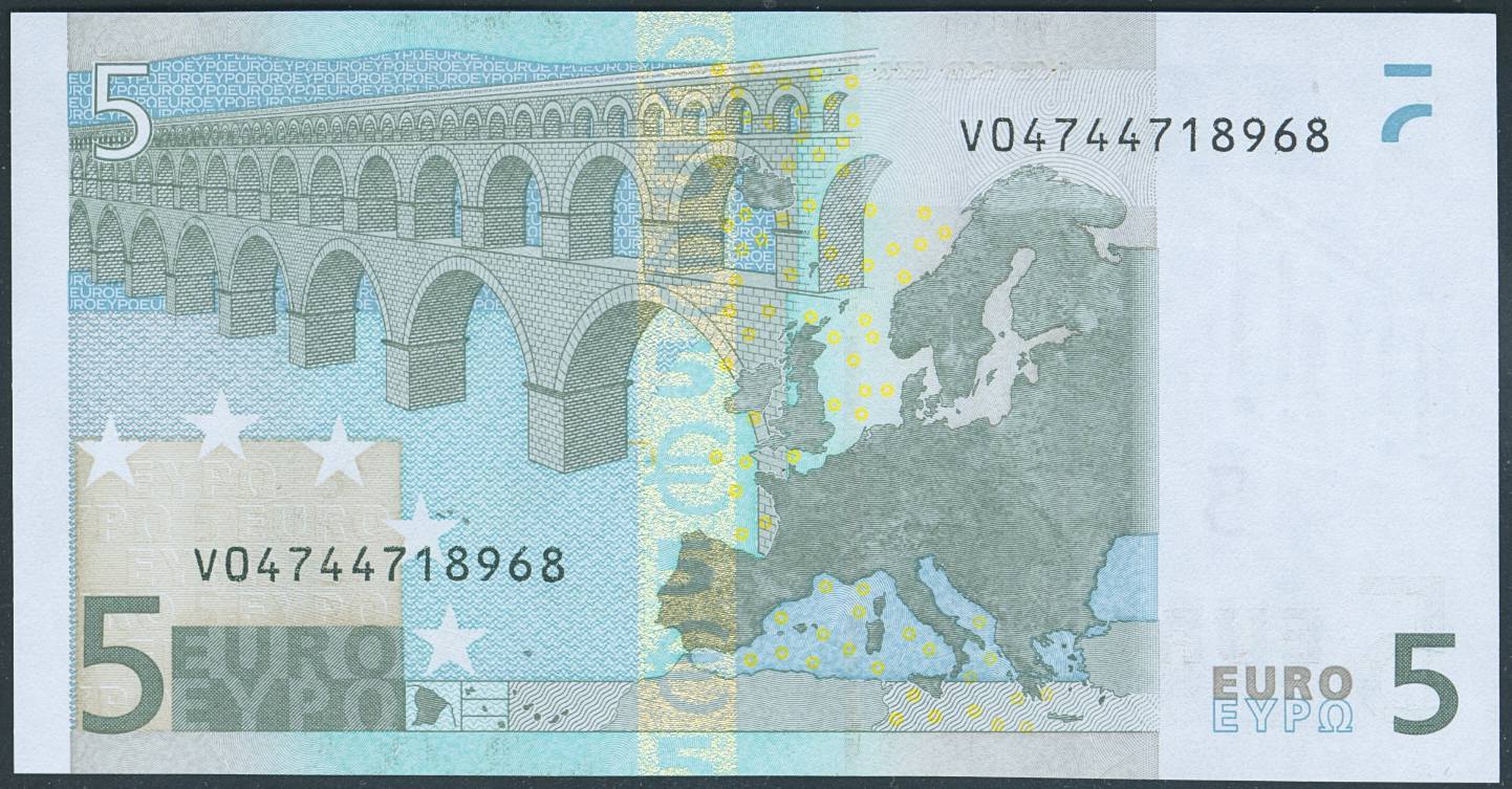 5 Euros. 1 de Enero de 2002. Firma Trichet. Serie V (España). (Edifil 2023: 486A). SC.