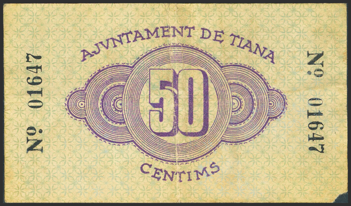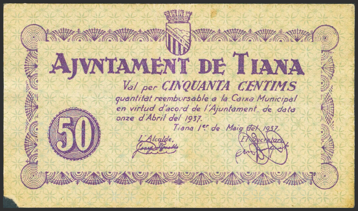 TIANA (BARCELONA). 50 Céntimos. 11 de Abril de 1937. (González: 10255). MBC.