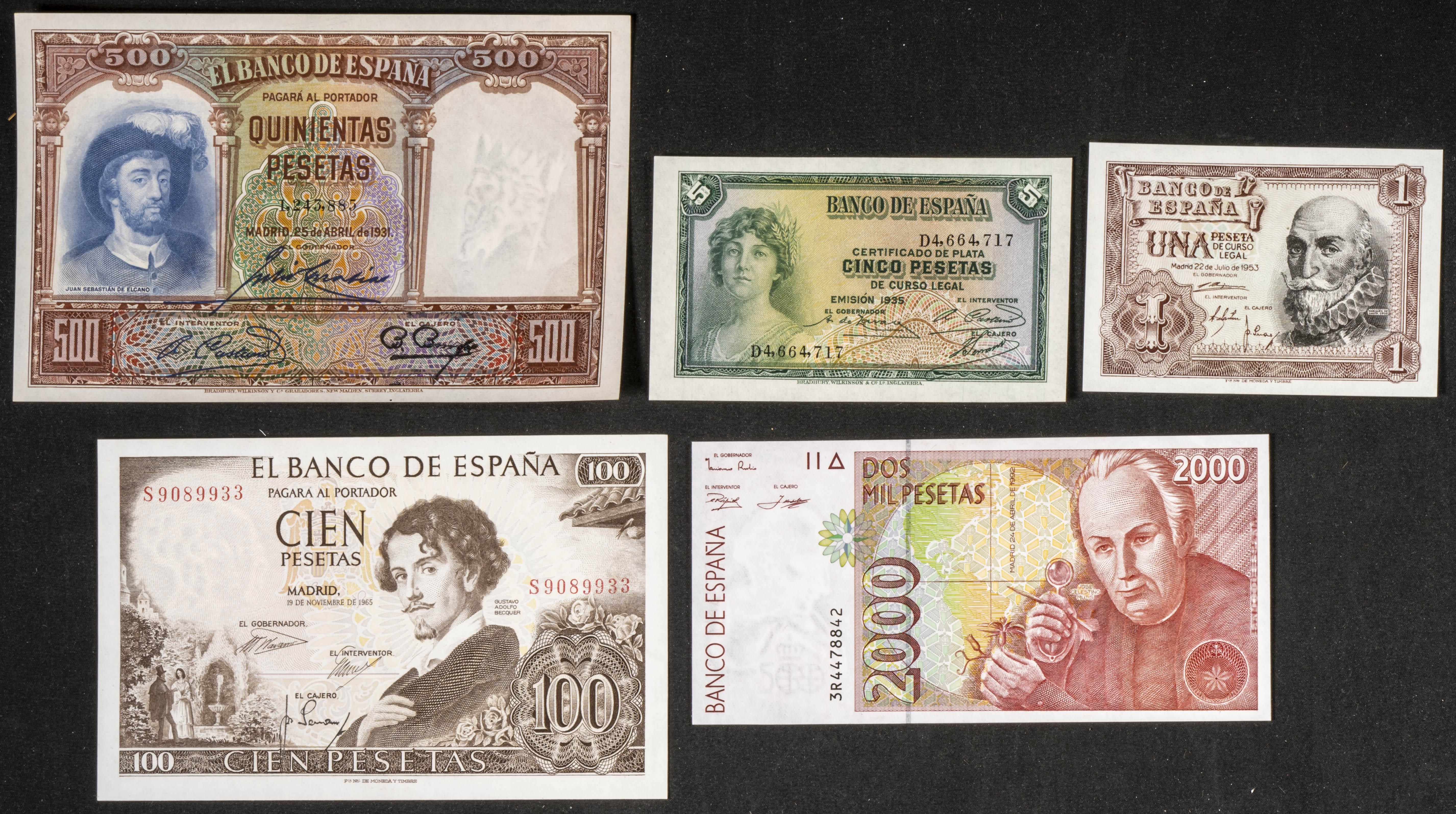 Conjunto de más de 5 billetes del Banco de España, de diferentes emisiones y en diversas calidades. A EXAMINAR.