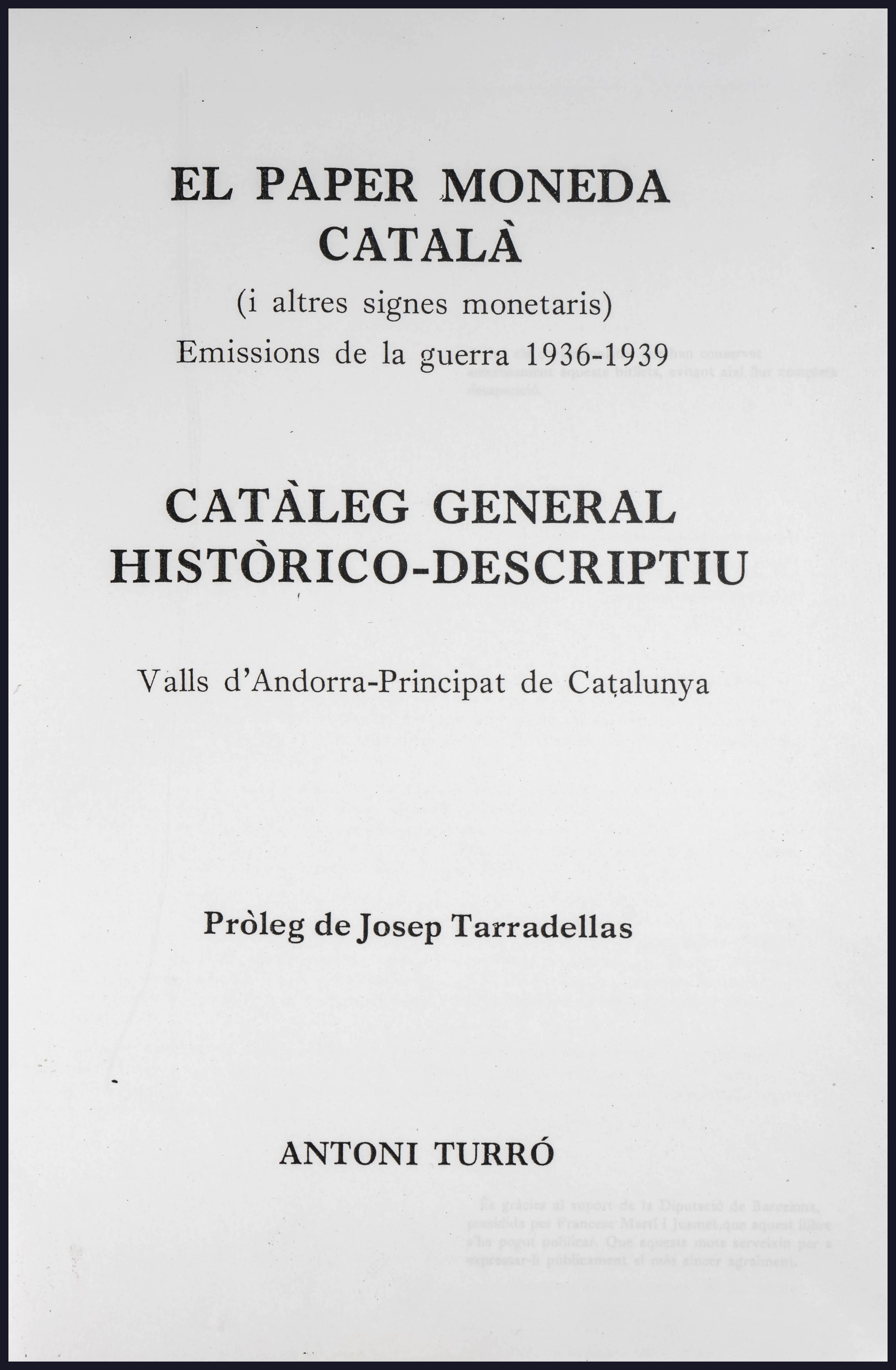 EL PAPER MONEDA CATALA 1936-1939, reimpresión. Antonio Turró. (con uso)