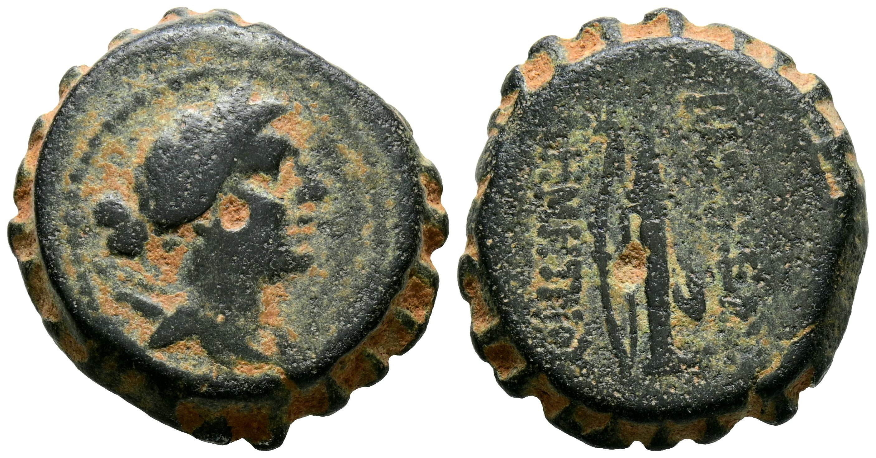 REINO SELEUCIDA, Demetrios I Soter. Ae20. (Ae. 9,27g/20mm). 162-150 a.C. Antioquía. (HGC 9, 826; Seaby 1645). Anv: Busto diademado y drapeado de Artemis a derecha, arco y carcaj en el hombro. Rev: Arco y carcaj, alrededor leyenda griega: ΒΑΣΙΛΕΩΣ ΔΗΜΗΤΡΙΟΥ. MBC.