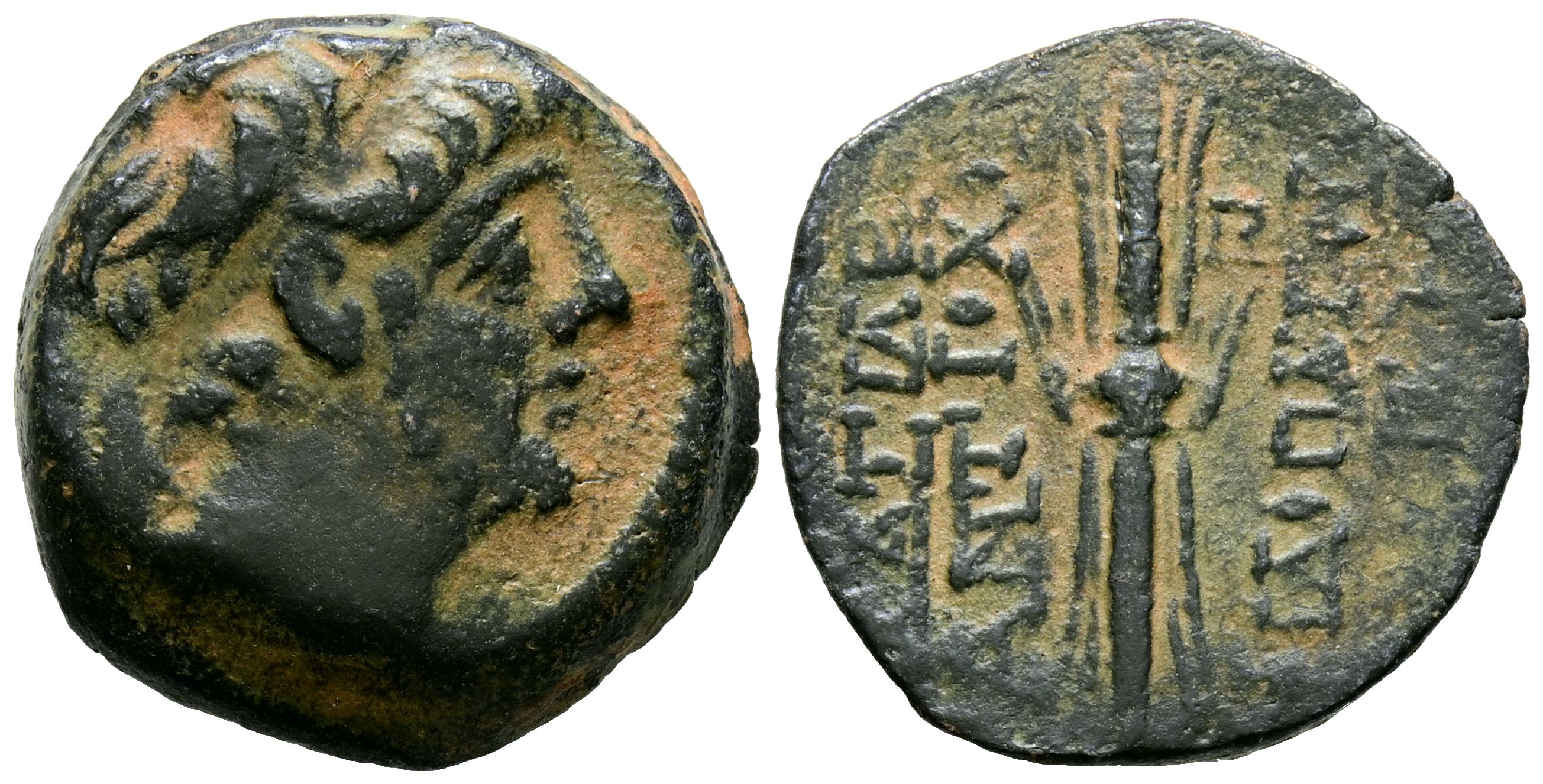 REINO SELEUCIDA, Antiochos IX Eusebes Philopator. Ae19. (Ae. 5,74g/19mm). 114-95 a.C. Antioquía en el Orontes. (HGC 9, 1248). Anv: Cabeza laureada de Antiochos IX a derecha. Rev: Rayo alado, alrededor leyenda griega: BAΣIΛEΩΣ ANTIOXOY ΦIΛOΠATOPOΣ. MBC.
