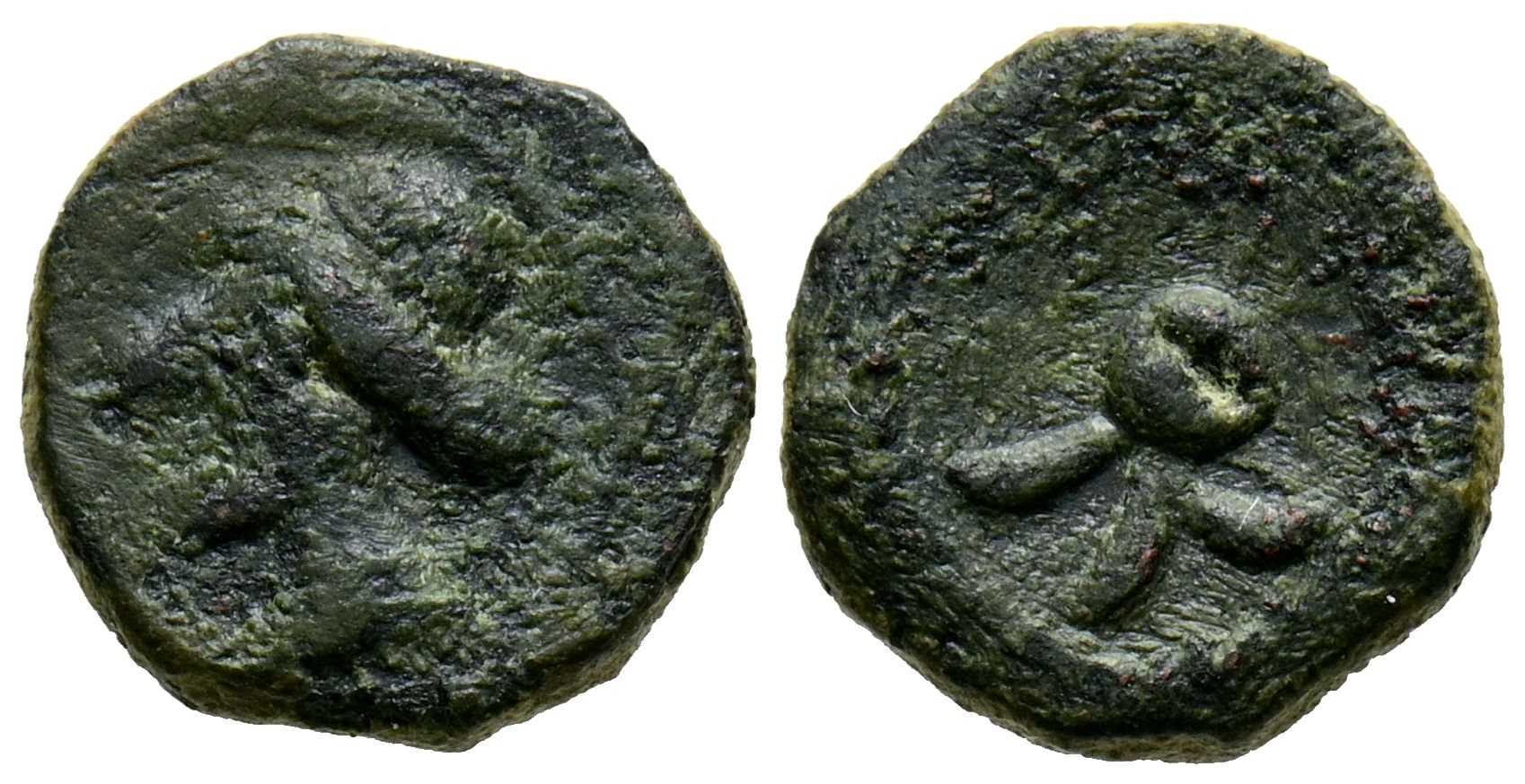 CARTAGONOVA (Cartagena, Murcia). 1/4 de Calco. (Ae. 1,52g/12mm). 220-215 a.C. (FAB-523). Anv: Cabeza de Atenea a izquierda. Rev: Casco a izquierda. MBC.