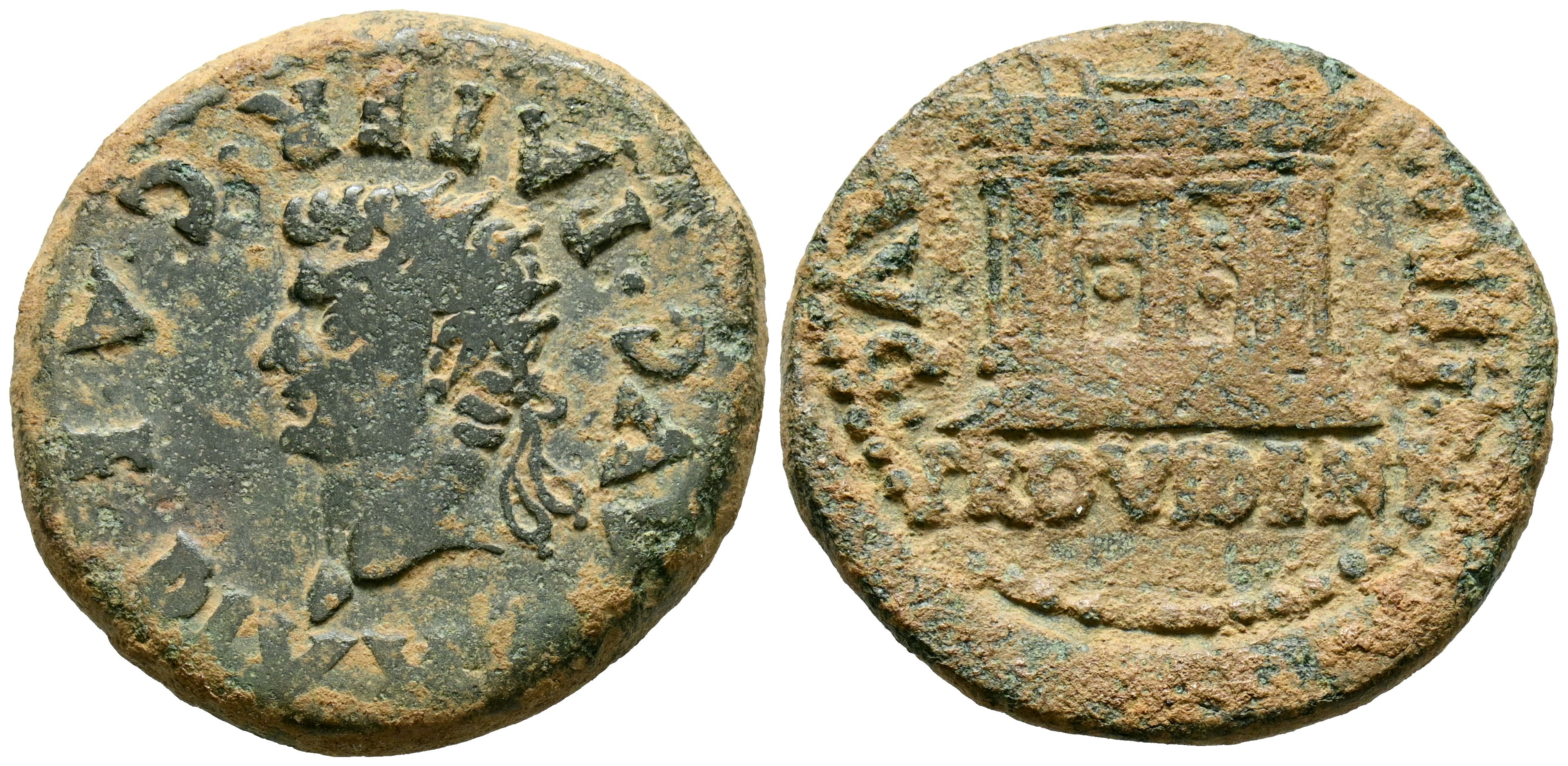 EMERITA AUGUSTA (Mérida, Badajoz). As. (Ae. 9,93g/27mm). 14-36 d.C. (FAB-1051). Anv: Cabeza de Augusto radiado a izquierda, alrededor leyenda: DIVVS AVG PATER CAE. Rev: Ara, alrededor leyenda: PERMI AVG PROVIDENT. MBC.