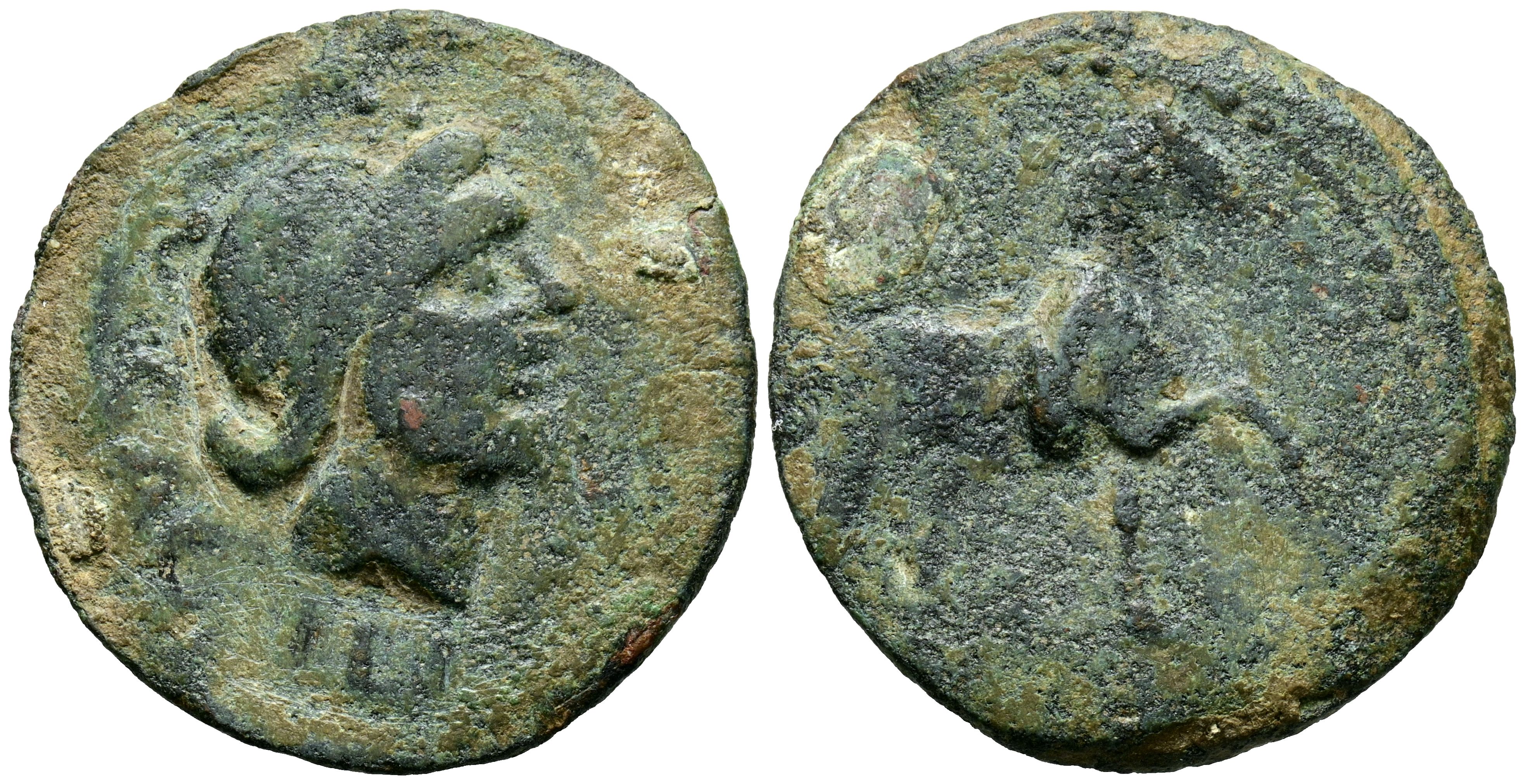 SACILI (Pedro Abad, Córdoba). As. (Ae. 7,52g/27mm). 120-50 a.C. (FAB-2020). Anv: Cabeza de masculina a derecha, debajo leyenda: SACILI. Rev: Caballo avanzando a derecha. BC+.