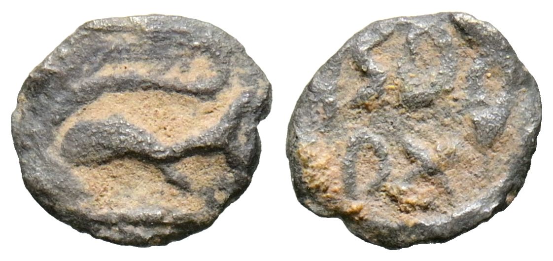 ARSE-SAGUNTO (Sagunto, Valencia). Hemióbolo. (Ar. 0,17g/8mm). 300-200 a.C. (FAB-2044). Anv: Delfín a izquierda. Rev: Leyenda en dos líneas: ARSE/TaR. MBC. Raro ejemplar.
