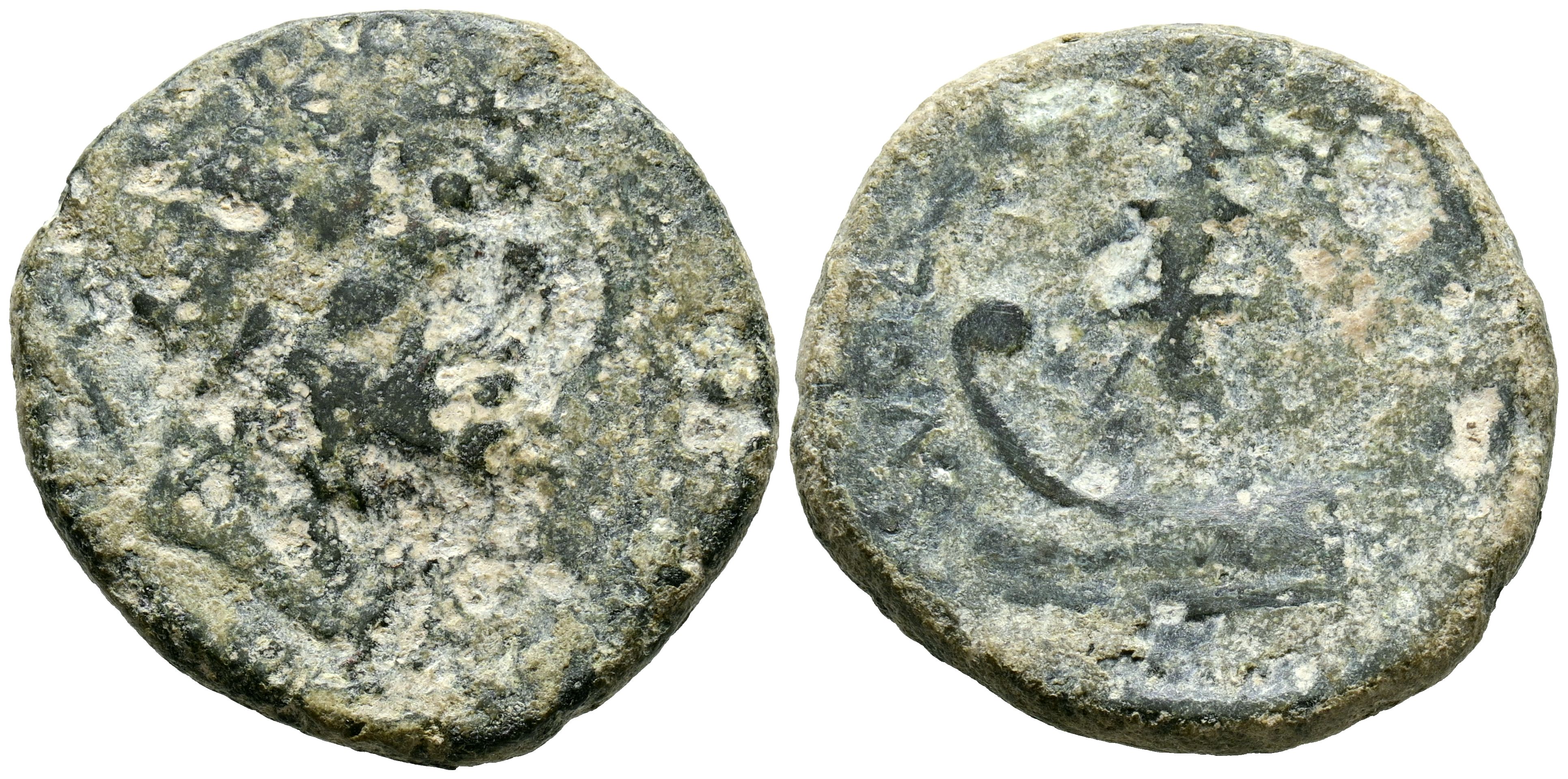 ARSE-SAGUNTO (Sagunto, Valencia). As. (Ae. 14,24g/27mm). 150-100 a.C. (FAB-2074). Anv: Cabeza de Neptuno a derecha, detrás tridente. Rev: Proa a izquierda, encima Victoria con corona y palma a izquierda, delante leyenda. BC+. Muy raro.