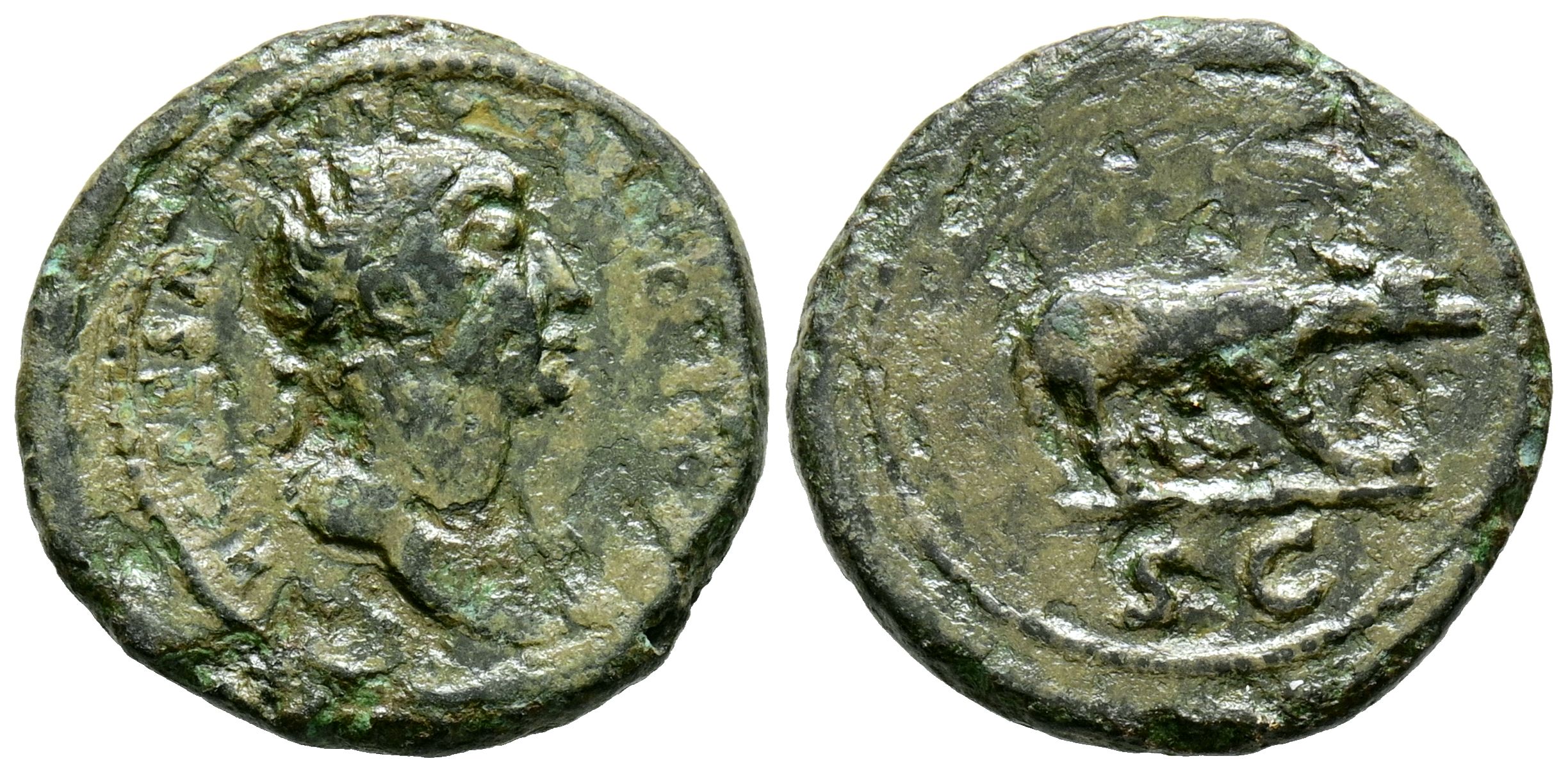 TRAJANO. Cuadrante. (Ae. 2,63g/17mm). 114-117 d.C. Roma. (RIC 691; Cohen 338). Anv: Busto laureado de Trajano a derecha, alrededor leyenda: IMP CAES NERVA TRAIAN AVG. Rev: Loba a derecha, en exergo: SC. MBC.