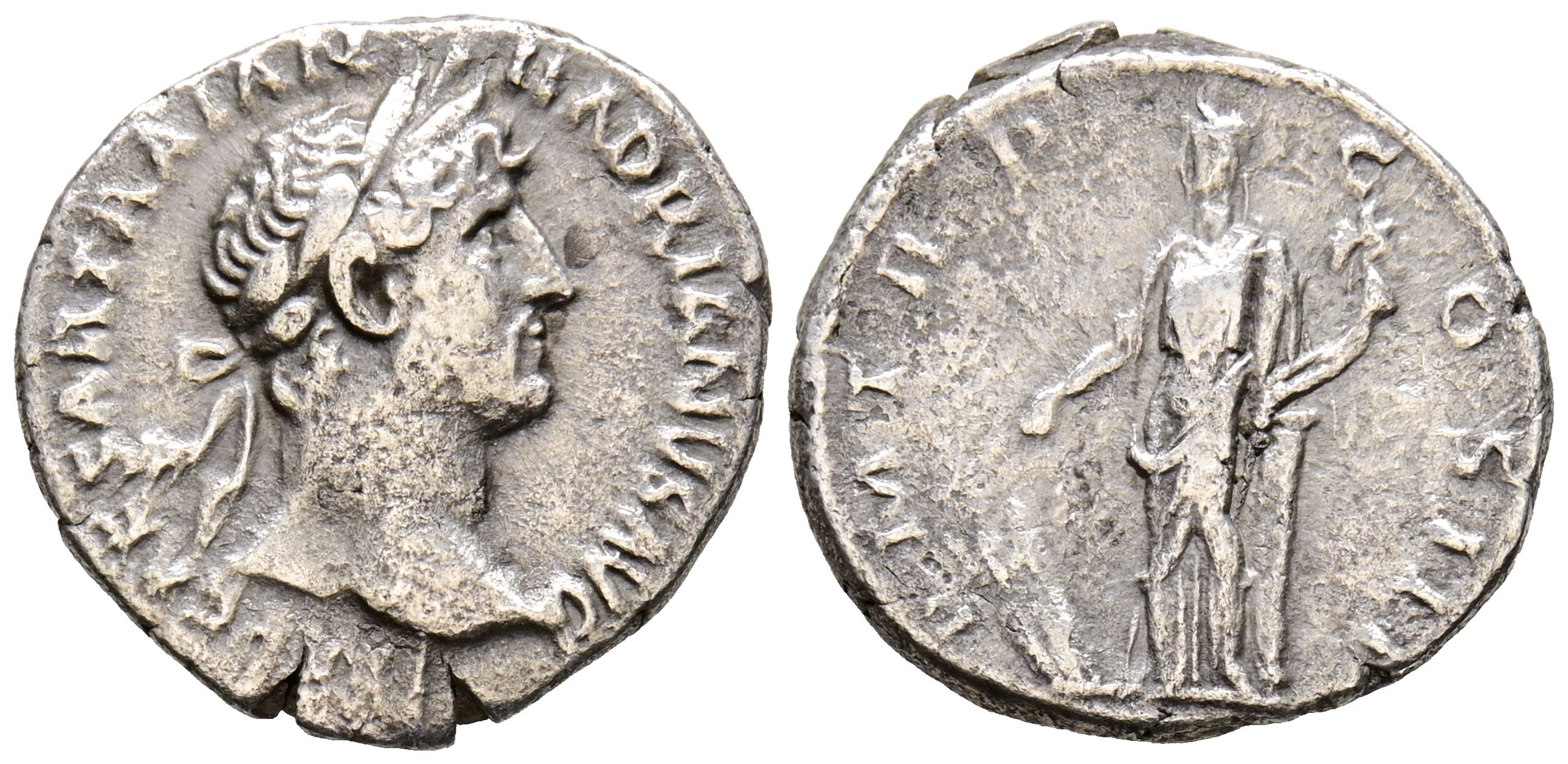 ADRIANO. Denario. (Ar. 3,00g/18mm). 119-122 d.C. Roma. (RIC 86). Anv: Busto laureado de Adriano a derecha, alrededor leyenda: IMP CAESAR TRAIAN HADRIANVS AVG. Rev: Fortuna estante a izquierda apoyada en columna portando timón y cornucopia, alrededor leyenda: P M TR P COS III. MBC-.
