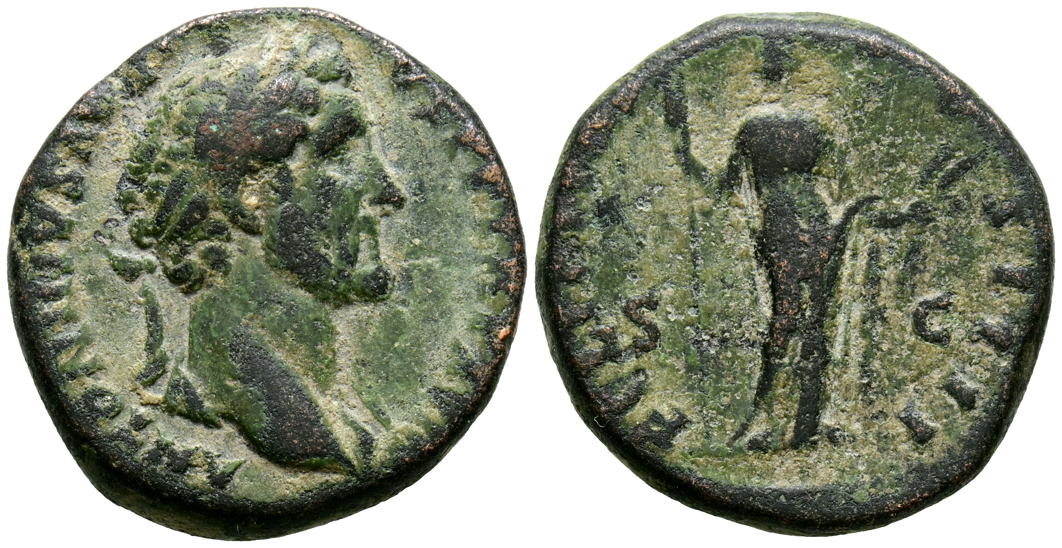ANTONINO PIO. As. (Ae. 10,77g/25mm). 138-161 d.C. Roma. (RIC 937). Anv: Busto laureado a derecha de Antonino Pio, alrededor leyenda: ANTONINVS AVG PIVS P P TR P XVII. Rev: Felicitas estante a izquierda portando caduceo y dos espigas de trigo, alrededor leyenda: FELICITAS COS IIII SC. MBC-.