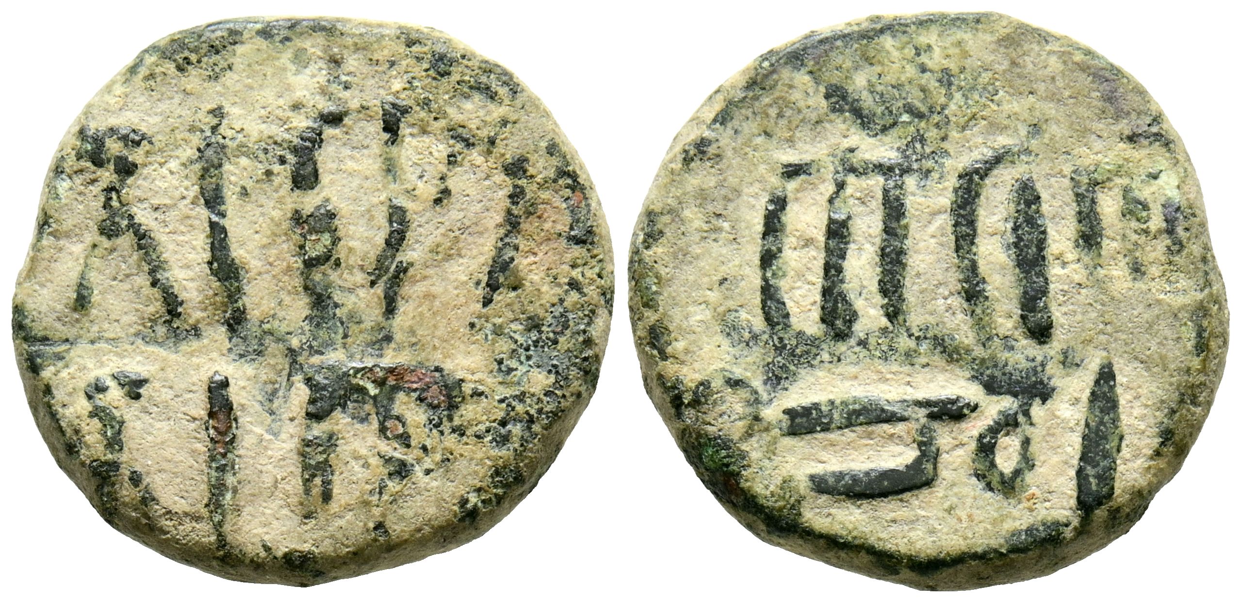 EMIRATO DEPENDIENTE DE CÓRDOBA, PERIODO DE GOBERNADORES. Anónimo. Felús. (Ae. 4,76g/17mm). Sin fecha ni ceca. (R. Frochoso II-a var). Esta curiosa pieza contiene en el reverso parte de su leyenda retrógrada. MBC.