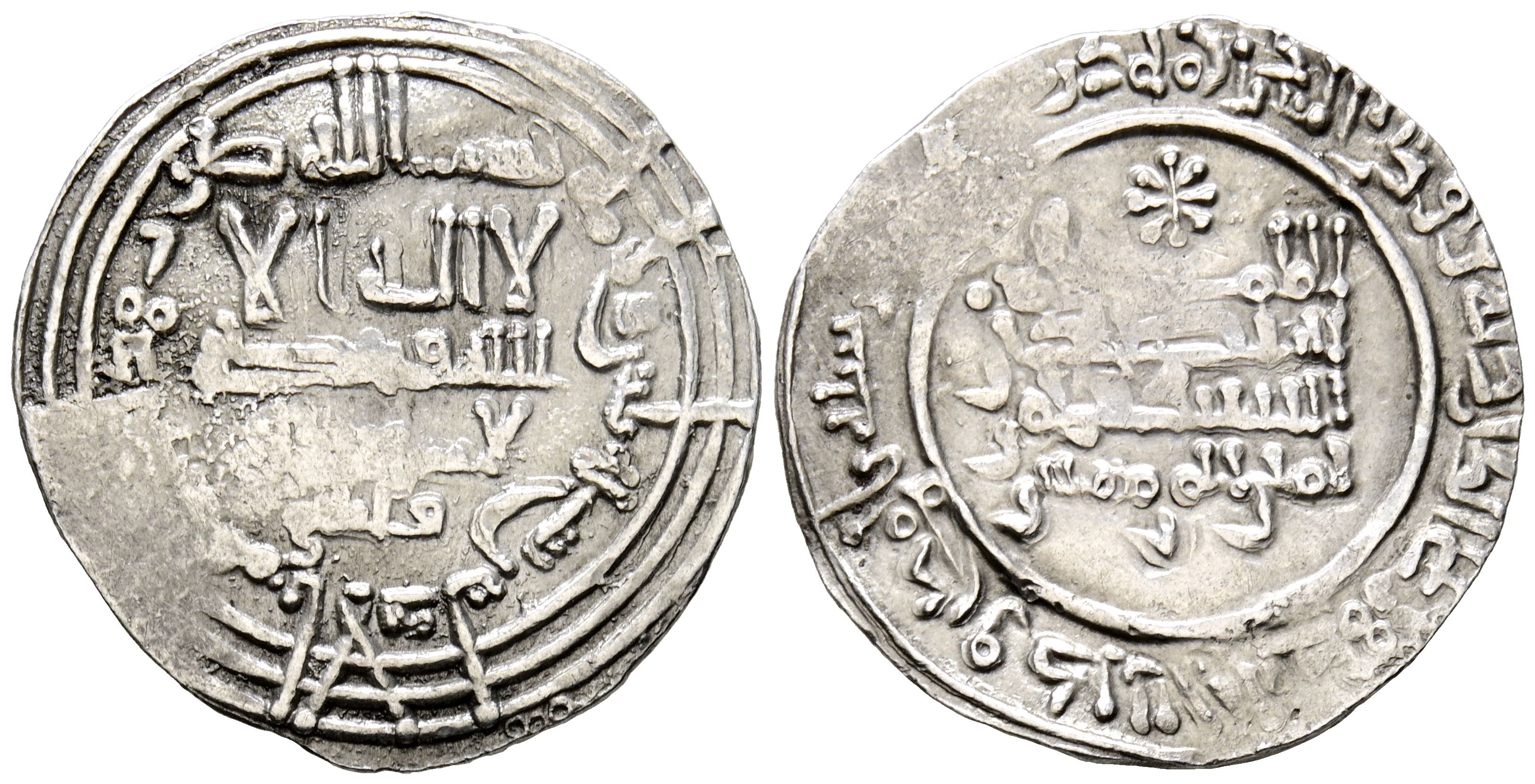 CALIFATO DE CÓRDOBA. 'Abd al-Rahman III. Dirham. (Ar. 2,32g/26mm). 330H. al-Ándalus / الاندلس. (Vives-396; R.Frochoso-330.9). Citando a Qasim en IA. MBC. Acuñación floja.