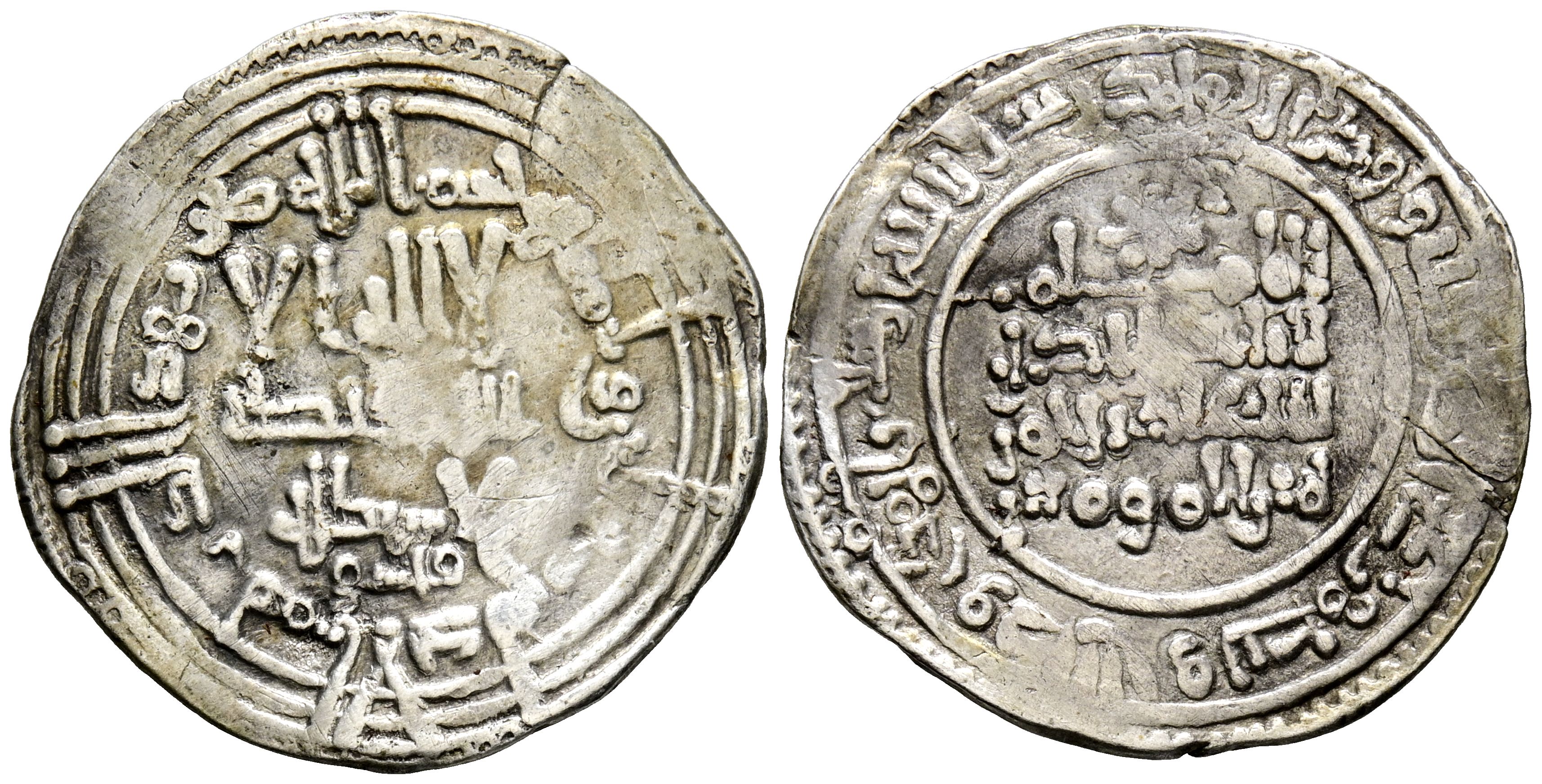 CALIFATO DE CÓRDOBA. 'Abd al-Rahman III. Dirham. (Ar. 2,84g/24mm). 330H. al-Ándalus / الاندلس. (Vives-396; R. Frochoso-330.10). Citando a Qasim en IIA. MBC. Ligero tono.
