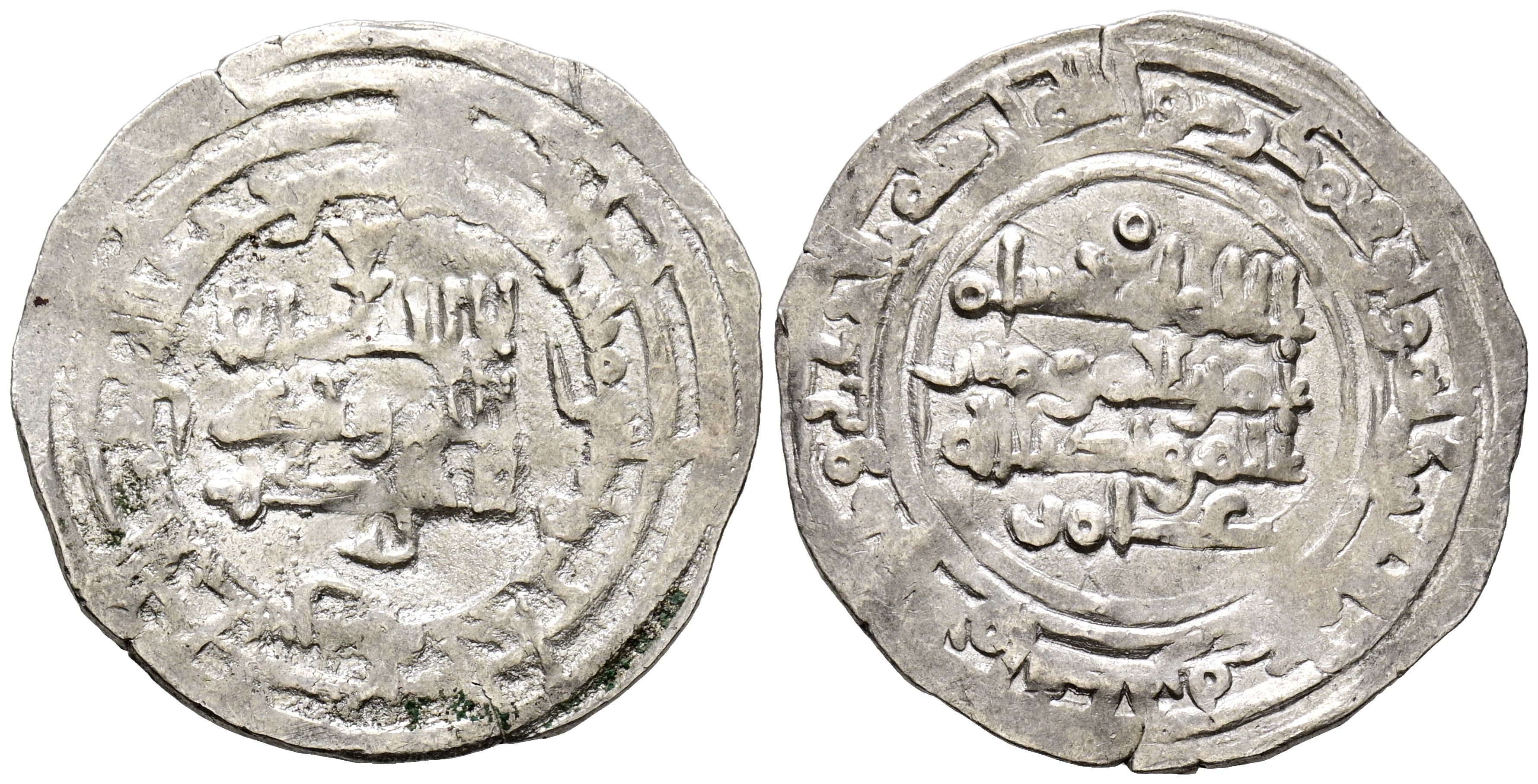 CALIFATO DE CÓRDOBA, Hisham II. Dirham. (Ar. 3,02g/24mm). 381H. al-Ándalus / الاندلس. (Vives 514; R. Frochoso 381.84). Citando a Amir en IIA. MBC.